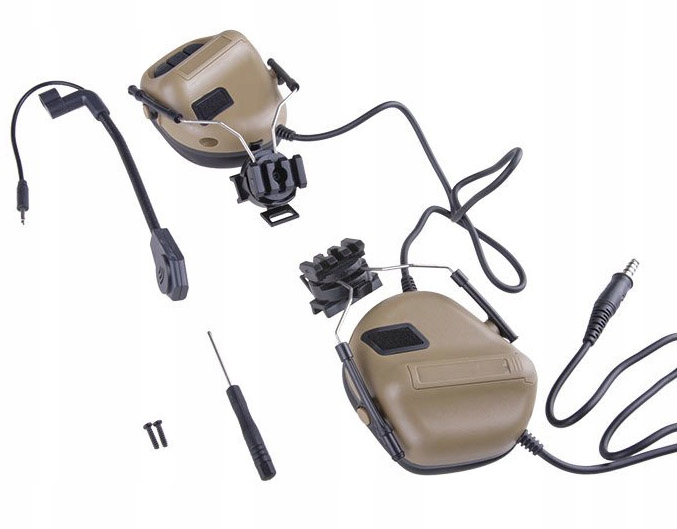 Zestaw słuchawkowy wyposażony w mikrofon oraz montaż do hełmów i kasków. Wykonany z wytrzymałego tworzywa sztucznego oraz metalu. Nauszniki pokryto przyjemnym dla skóry materiałem, co zapewnia wysoki komfort użytkowania zestawu.