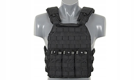 Zaprojektowany z myślą aby był najbardziej wygodnym i najlepiej dopasowanym plate carrierem na rynku. Plate Carrier wyposażony w regulowany, elastyczny, rozciągający pas taliowy i regulowane wyściełane ramiączka dla zapewnienie stabilności podczas wysokiej aktywności fizycznej, zintegrowaną platformę MOLLE dla modułowych ładownic i kieszeni na froncie i tyle kamizelki i 2 kieszenie łatwego dostępu pod standardowe płyty. UWAGA! W zestawie otwarta potrójna ładownica na kaliber 5,56 i dwie atrapy płyt balistycznych.