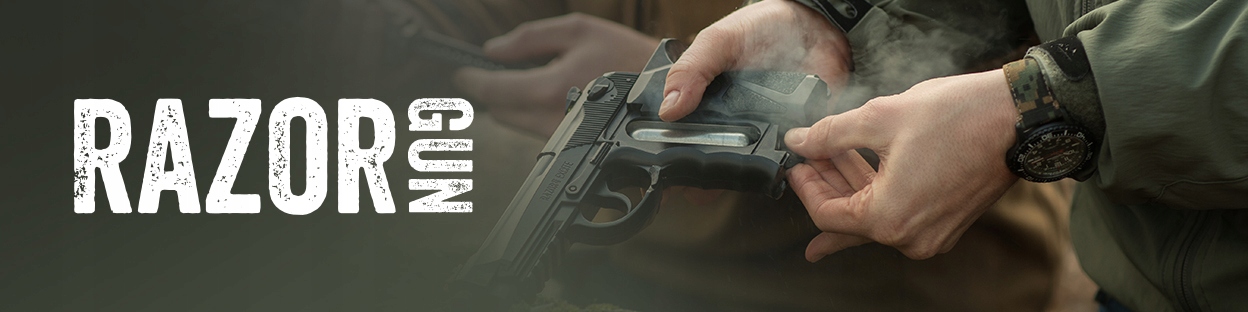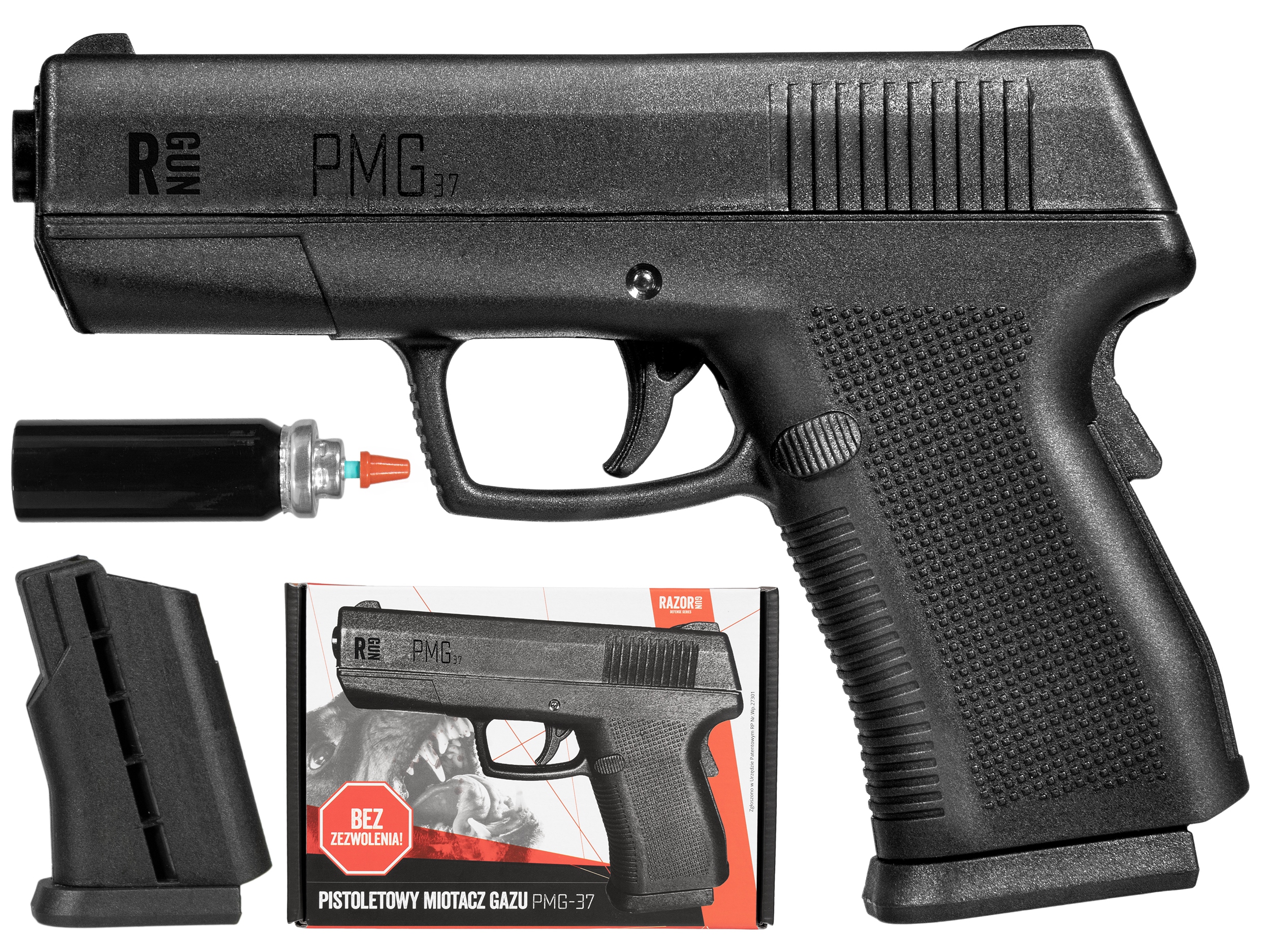 RazorGun PMG-37 to następca pistolety gazowego RMG-19 PRO, którego byliśmy producentem. W nowej wersji zdecydowaliśmy się na wprowadzenie solidniejszej obudowy oraz zrezygnowaliśmy z podwójnego systemu zabezpieczenia na korzyść bardziej funkcjonalnego chwytowego bezpiecznika niekontrolowanego wystrzału. Nowej generacji pistoletowy miotacz gazu dostępny bez zezwoleń i rejestracji, zaprojektowany oraz wyprodukowany w Polsce.