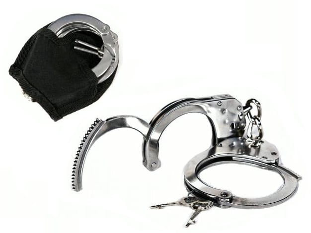 Policajné putá nerezová oceľ + kabura