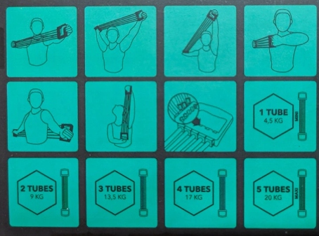 - siła rozciągnięcia do 20 kg (1 linka gumowa to obciążenie 4,5kg)