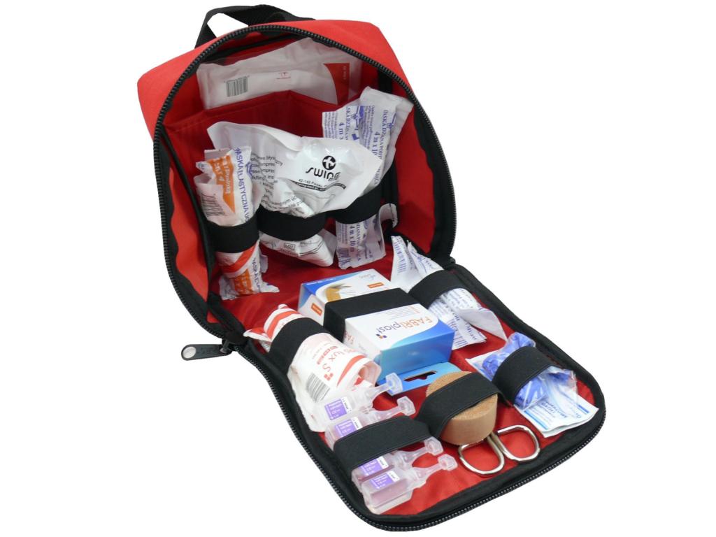 Apteczka medyczna z bogatym wyposażeniem, m.in.