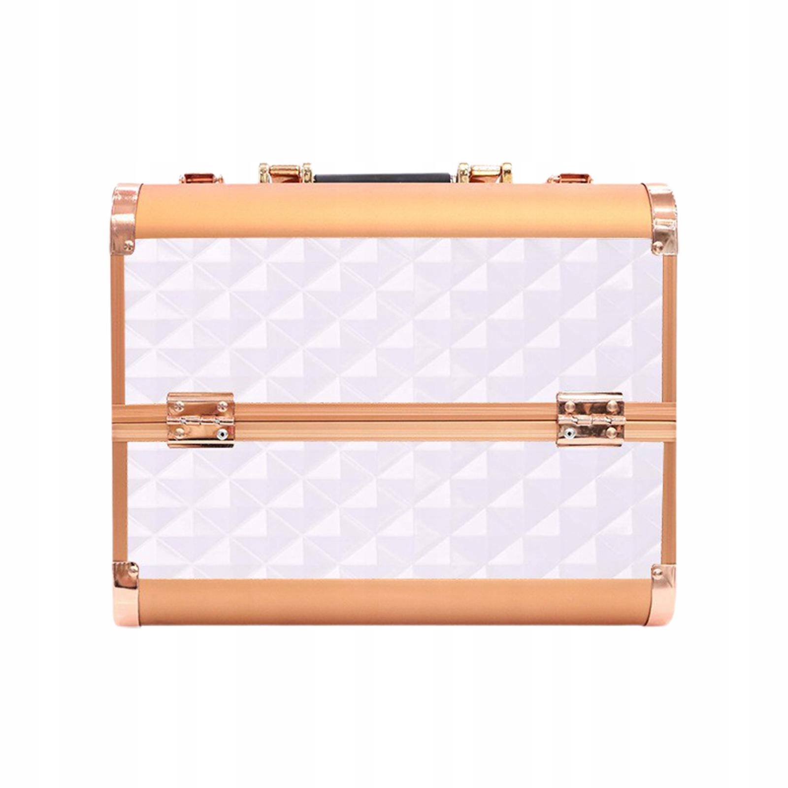 Kuferek do makijażu ma dno o dużej pojemności, które można wykorzystać do umieszczenia lamp do paznokci, dzięki czemu przestrzeń może być pełniej wykorzystana.