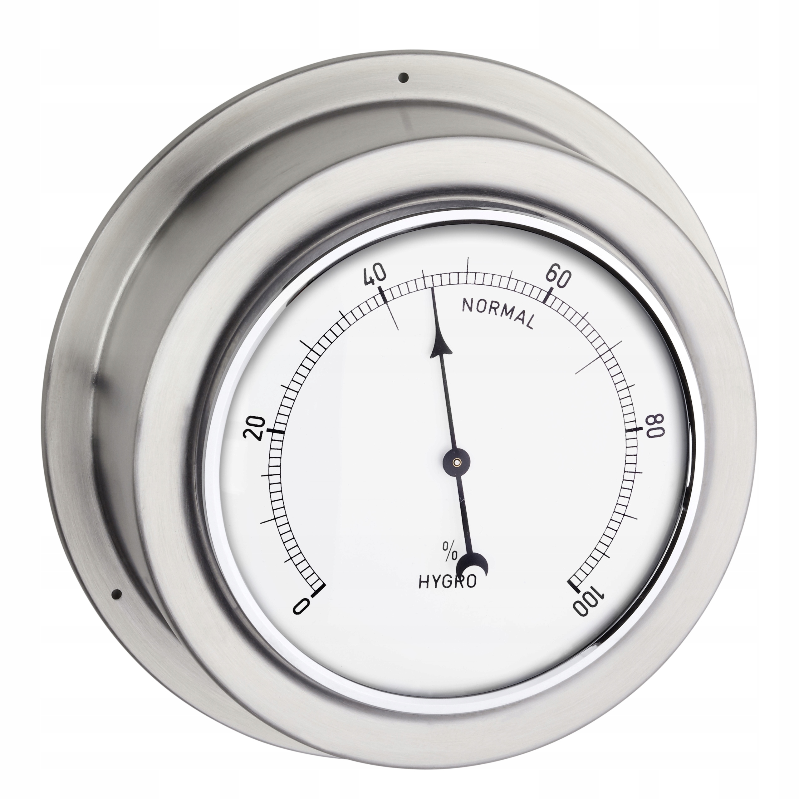Kabinowy HIGROMETR ( do pomiaru wilgotności ) w obudowie ze stali nierdzewnej z kolekcji MARITIM renomowanej niemieckiej firmy TFA Dostamnn