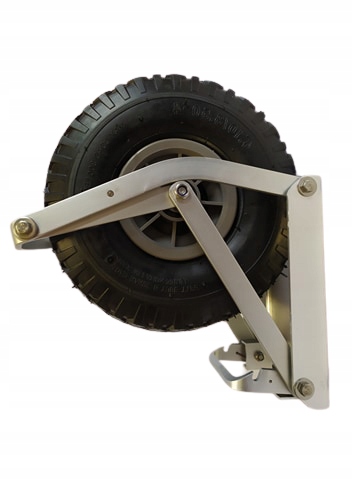 Konstrukcja posiada blokadę w obydwu położeniach więc koło nie może samoistnie złożyć się podczas kołowania lub pływania.