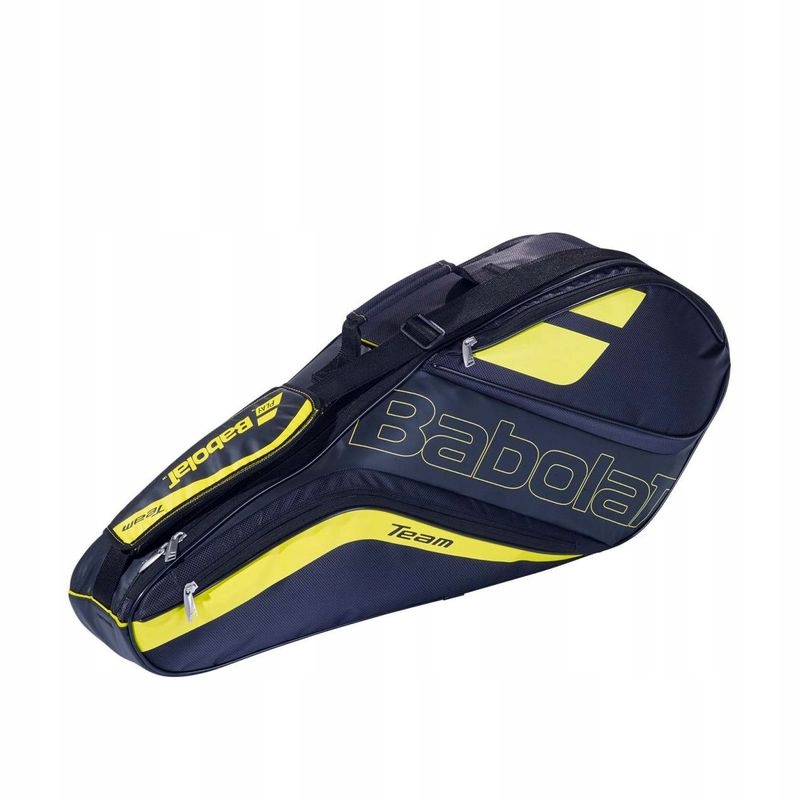 Babolat Team x3 Racket Holder Bag - jednokomorowa torba na rakiety do tenisa, squasha lub badmintona. Propozycja dla graczy rekreacyjnych lub juniorów poszukujących niedużej torby na rakietę i kilka niezbędnych rzeczy. Przeznaczona na 3 rakiety. Komora główna zmieści rakietę oraz kilka rzeczy. Zapinana jest na solidny dwukierunkowy zamek. Na bokach torby znajdują się dodatkowo cztery mniejsze kieszonki na zamek. Doskonale posłużą one do przechowywania mniejszych akcesoriów oraz rzeczy podręcznych.