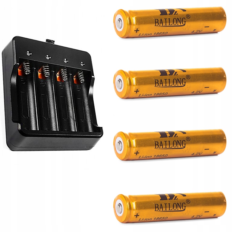 Do zestawu dołączono 4 oryginalne akumulatory serii premium, renomowanej firmy BAILONG 18650 8800mAh 3,7V. Są to akumulatory coraz częściej używane we wszelkiego rodzaju urządzeniach typu: latarki, odtwarzacze, źródła światła, urządzenia multimedialne itp.