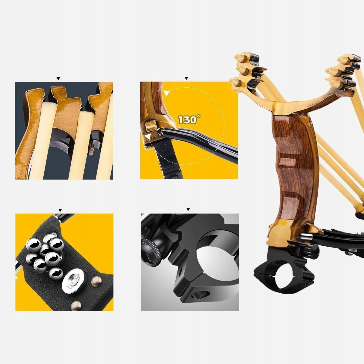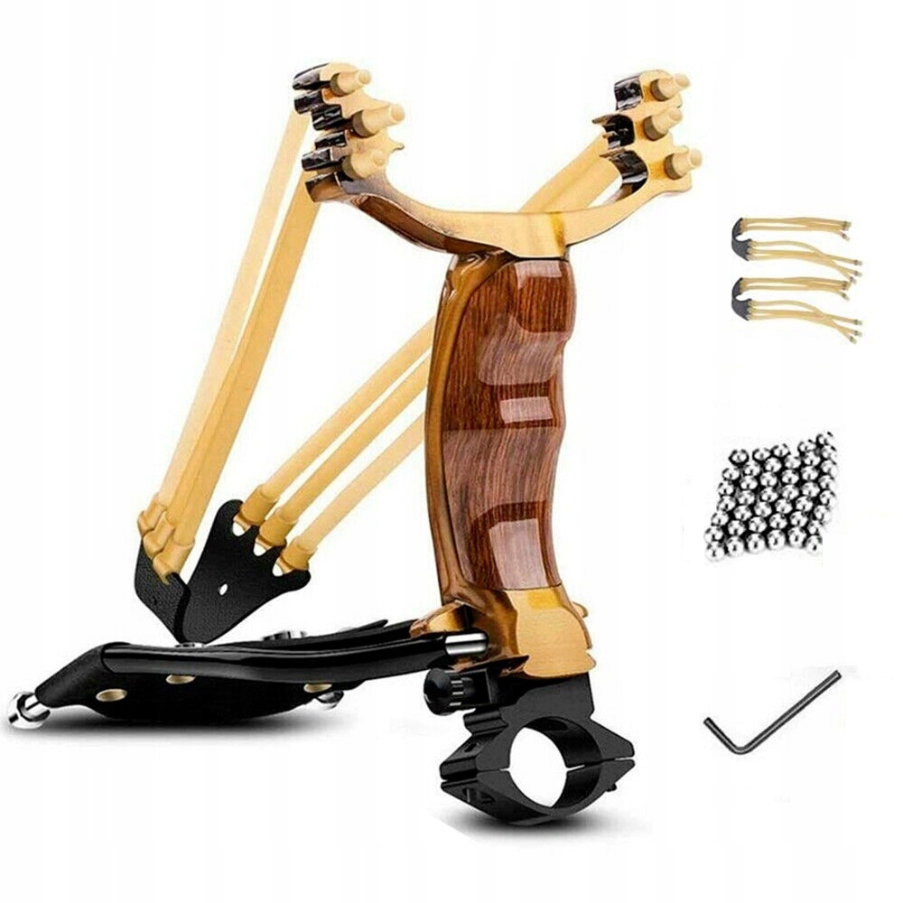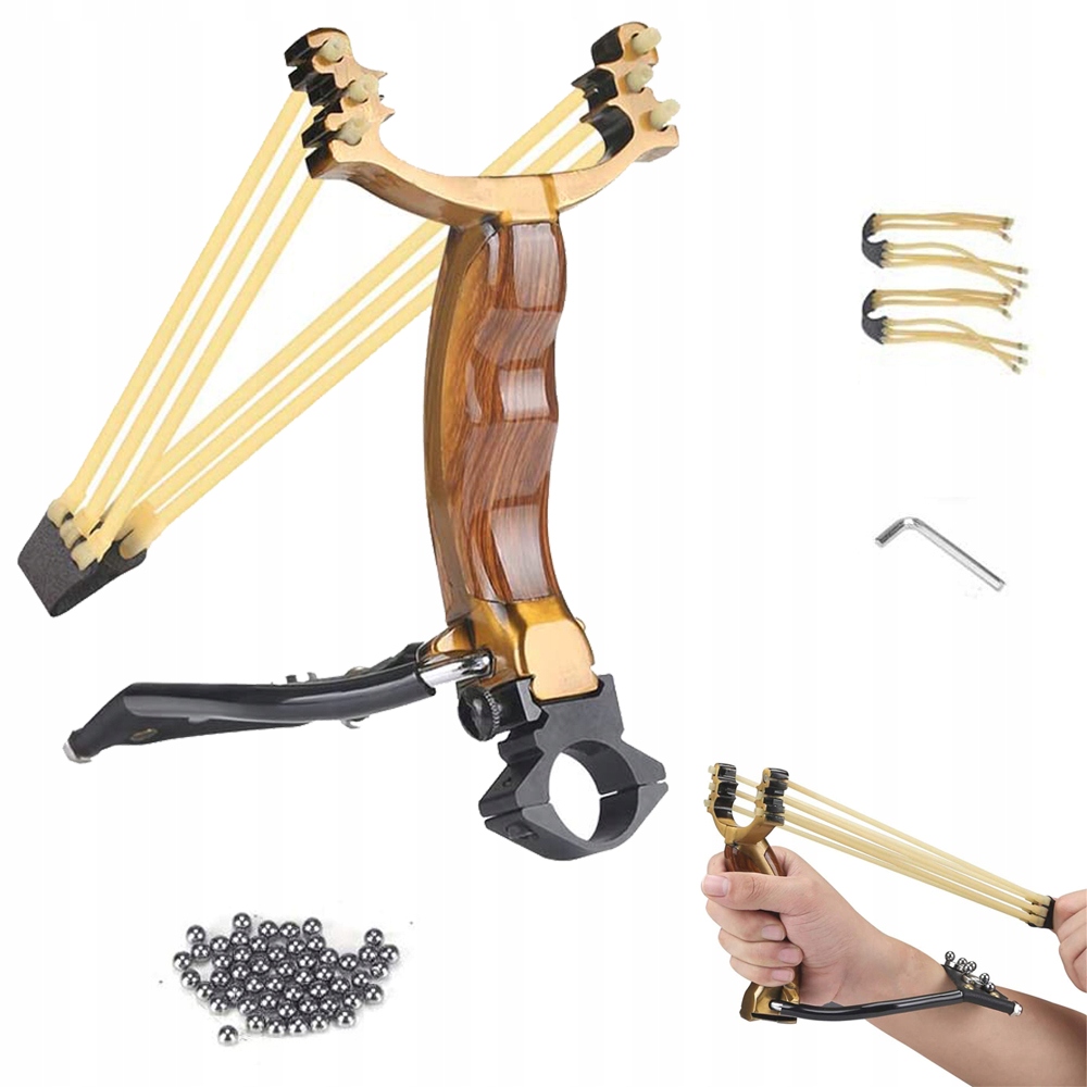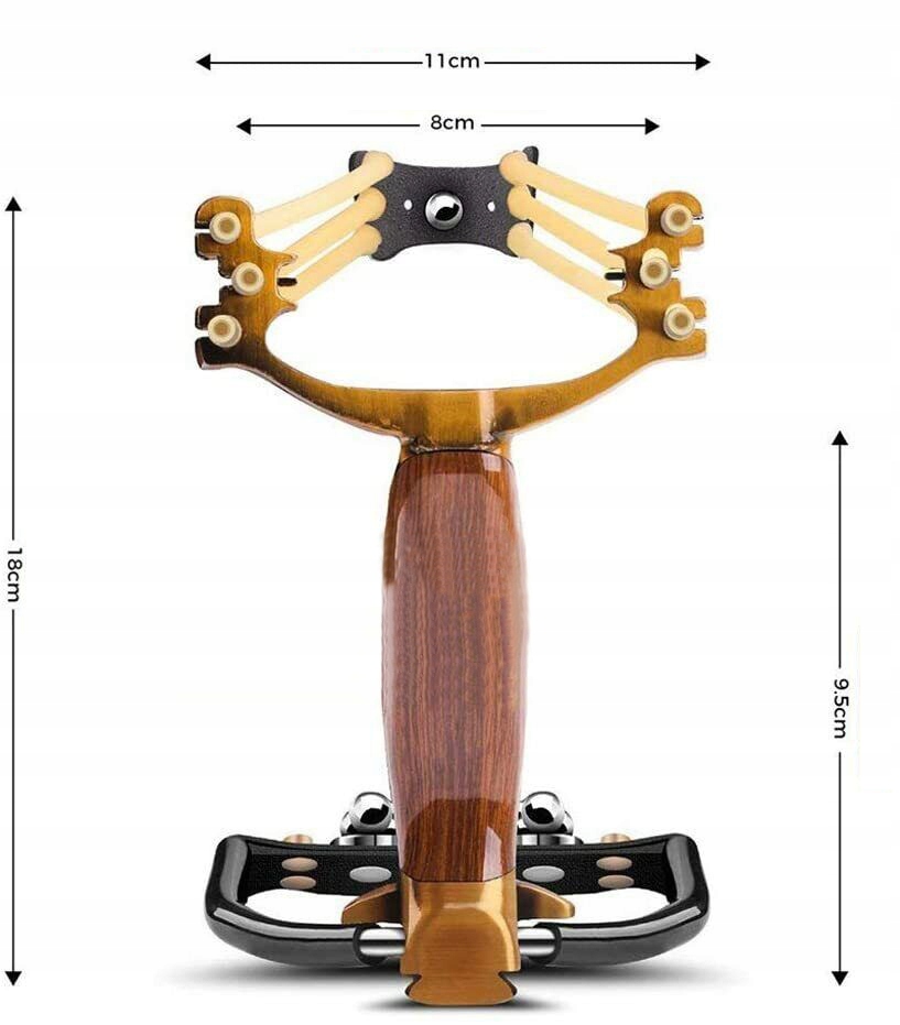 - [Dokładne strzelanie]: Regulowana podpórka pod nadgarstek i proca ze złotymi proporcjami, składana proca, łatwa w użyciu i wygodna do przenoszenia, z uchwytem na latarkę laserową, pozwala na dokładne polowanie nawet w nocy.
