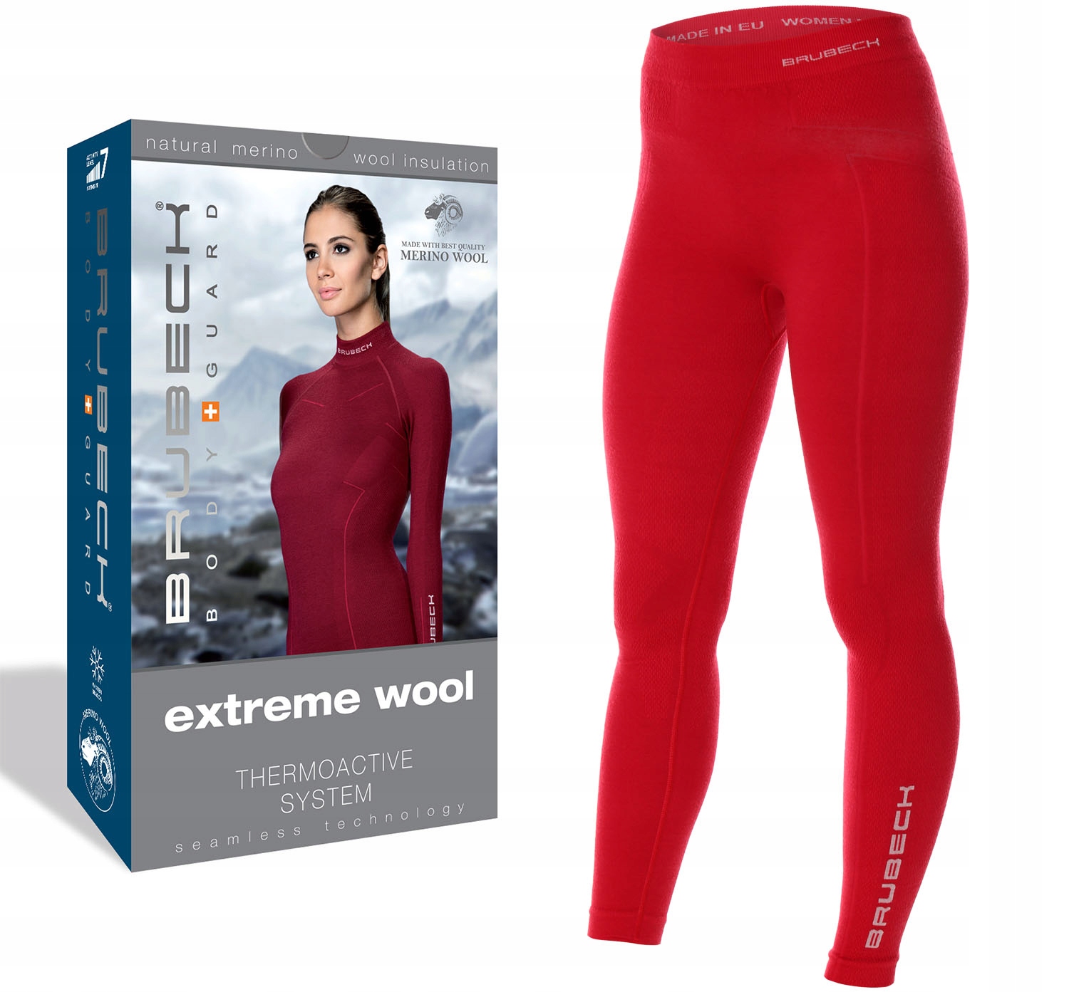 Damskie spodnie termoaktywne BRUBECK Extreme Wool to najcieplejsza bielizna w ofercie tej marki wykonana z najwyższej jakości wełny owiec merynosów. Extreme Wool jest szczególnie polecana osobom narażonym na niskie temperatury. Idealnie nadaje się do uprawiania sportów zimowych jak i do użytku na co dzień czy do pracy. Bielizna termoaktywna BRUBECK Extreme Wool została wykonana w dwuwarstwowej, bezszwowej technologii co pozwoliło uzyskać doskonałe właściwości termoregulacyjne. Bielizna termoaktywna z wełny merino zapewnia szybki odbiór wilgoci i znacznie zwiększa komfort cieplny. Wszystko to sprawia, że bielizna pomaga w utrzymaniu stałej temperatury ciała. Odzież chroni organizm przed wyziębieniem jak i przegrzaniem. Dzianina z wełny merino charakteryzuje się dużą elastycznością, idealnie dopasowuje się do ciała i podkreśla sylwetkę. Produkty Brubeck Extreme Wool posiadają właściwości antyalergiczne - nie powodują uczuleń i podrażnień a także antybakteryjne - zapobiegają rozwojowi bakterii i powstawaniu nieprzyjemnych zapachów. Wełna z owiec merino oferuje dodatkowe właściwości takie jak mikromasaż jej włóknami, który pomaga w ukrwieniu komórek, co wpływa na poprawę krążenia. Zobojętnianie jonów dodatnich wpływa dobroczynnie i łagodząco na system nerwowy.