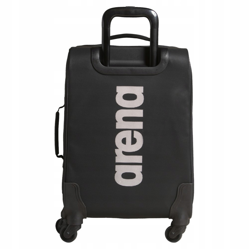 MAŁA PODRÓŻNA WALIZKA, WYKONANA Z WYSOKIEJ JAKOŚCI MATERIAŁÓW W ELEGANCKIM, CZARNYM KOLORZE Z KTÓRYM KONTRASTUJE BIAŁE LOGO ARENA .