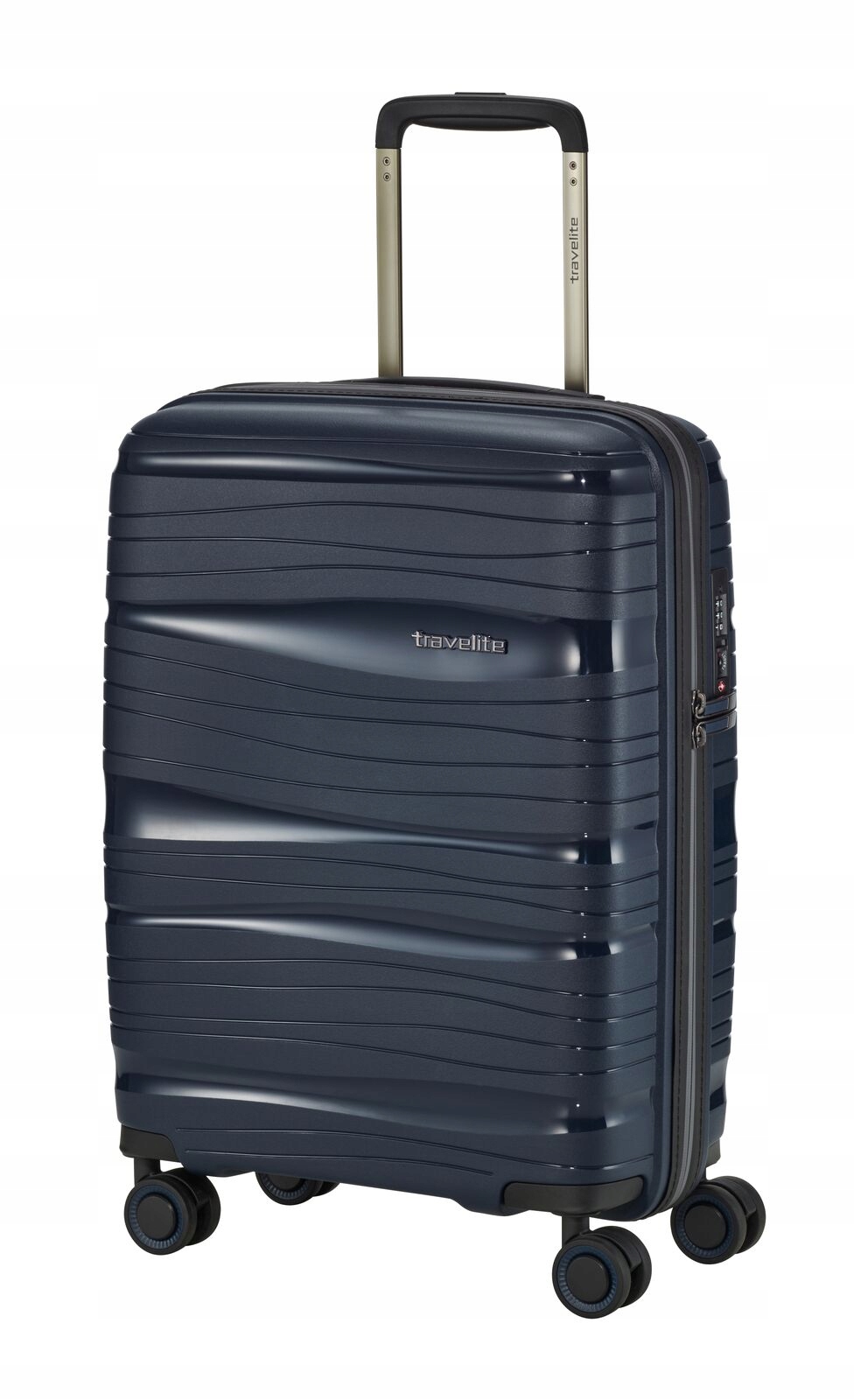 Walizka mała "kabinowa" firmy Travelite z kolekcji Motion o pojemności 37 litrów na 4 podwójnych kółkach. Wykonana jest z bardzo trwałego, elastycznego i odpornego na uszkodzenia polipropylenu. Zabezpieczenie zapewnia płaski szyfrowy zamek z systemem TSA. Waga walizki tylko 2 kg.