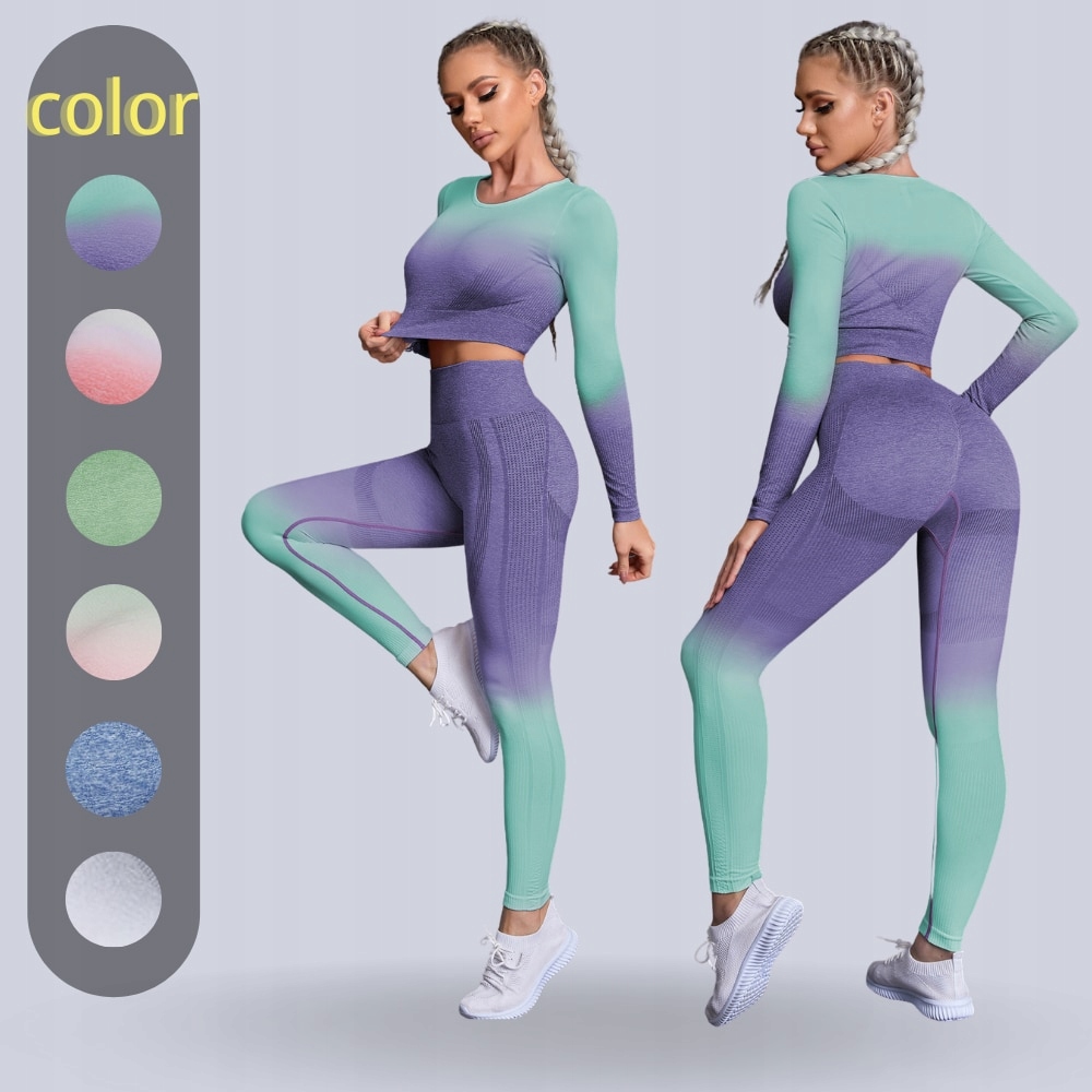 Damskie kombinezony do jogi gradientowe bezszwowe procesy jesienne i zimowe dresy sportowe utrzymuj ciepło z długim rękawem zestaw do fitnessu jogi