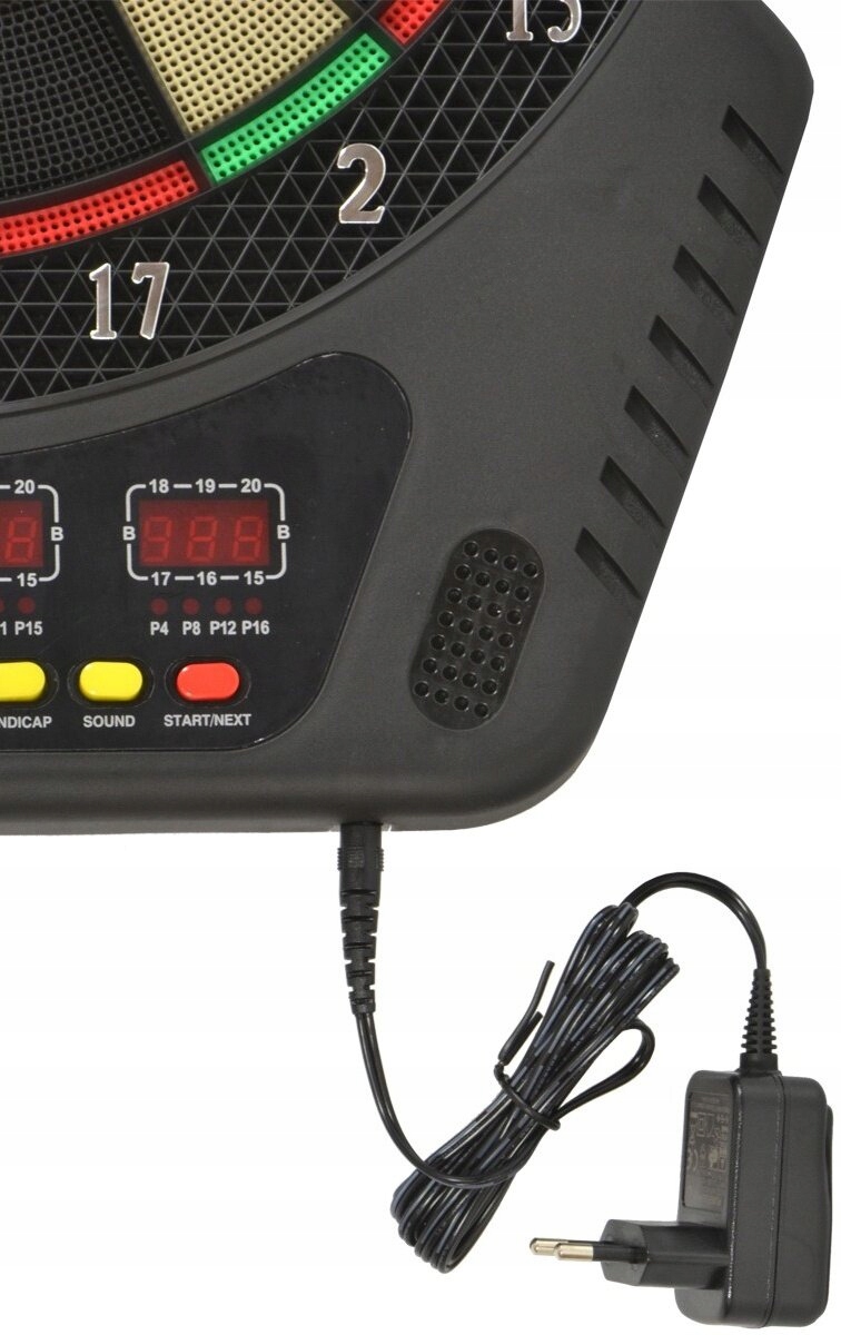 Tarcza do darta posiada 4 czytelne wyświetlacze, sygnalizację głosową i dźwiękową, a dodatkową funkcją jest uśpienie po 30 minutach i automatyczne wyłączenie. Model 1029542 posiada zasilanie sieciowe, choć możliwe jest również zasilanie za pomocą 4 baterii AA.