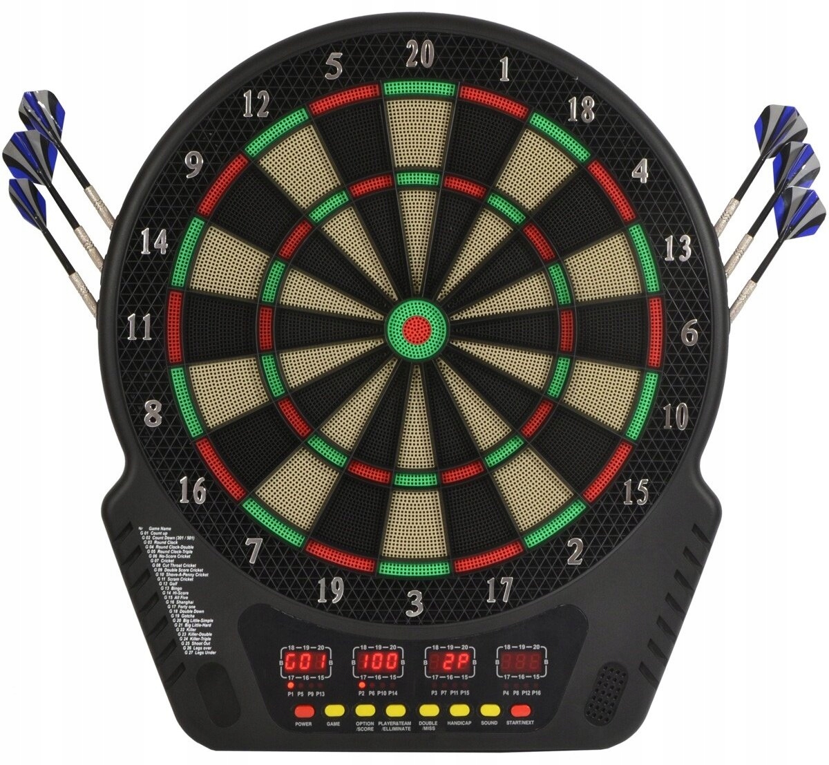 - Oferuje 27 gier z opcjami 243 punktów. Grać może jednocześnie nawet 16 osób, więc tarcza to świetna zabawa dla przyjaciół i rodziny.