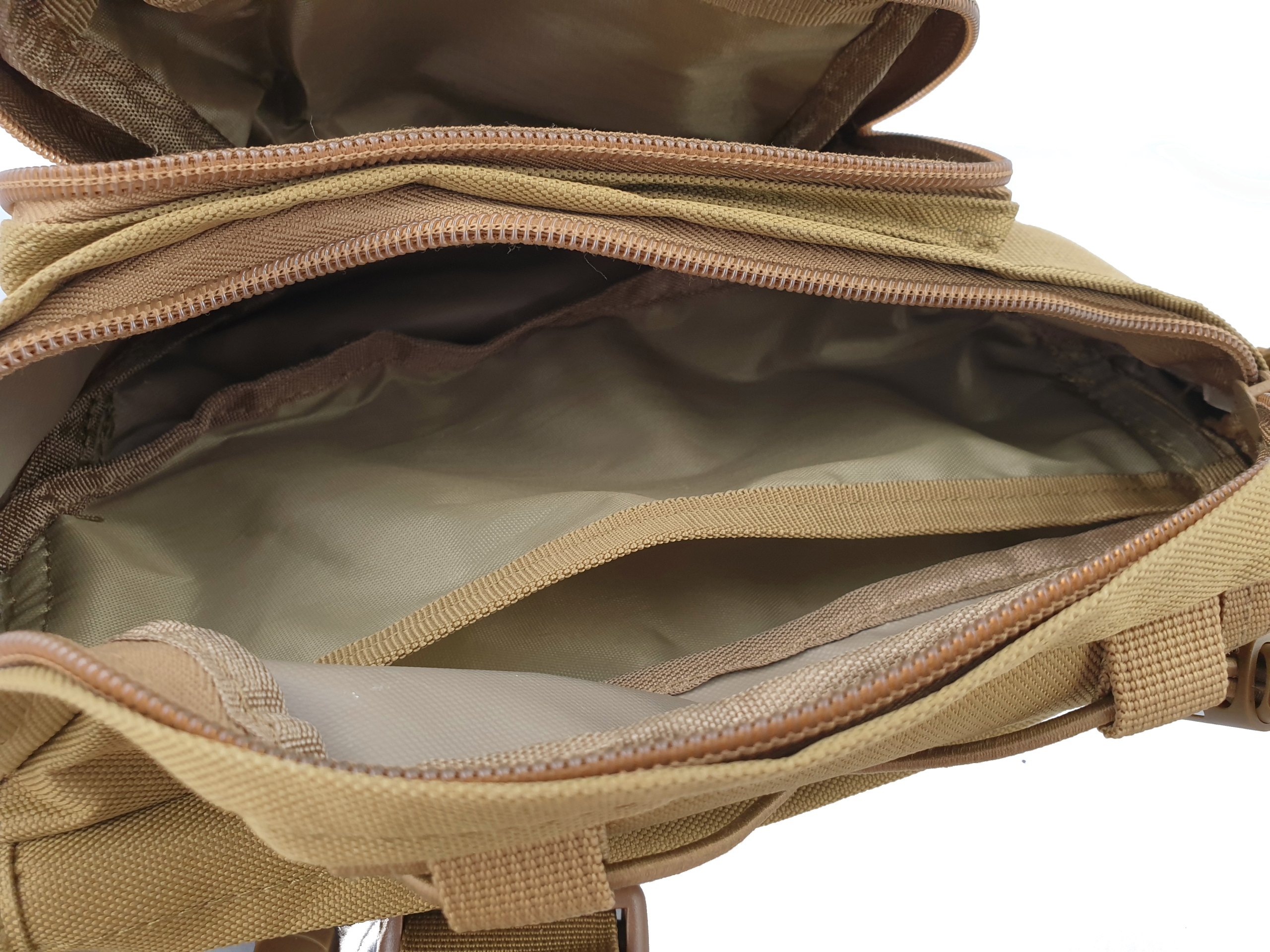 4 kieszenie zamykane na zamek błyskawiczny, w tym główna komora ma zamek dwustronny