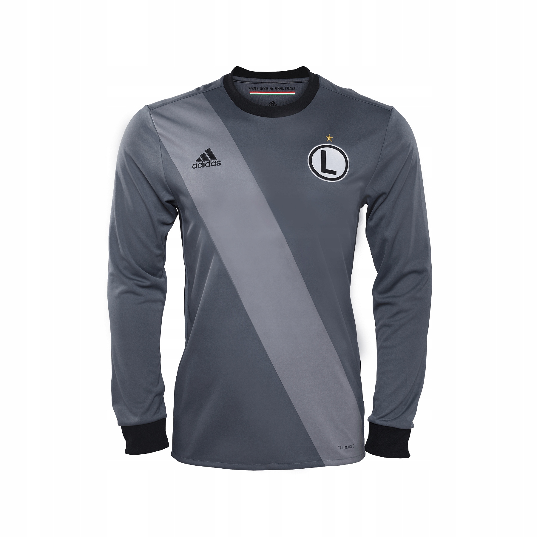 Koszulka meczowa adidas Legia Warszawa to połączenie najnowszej technologii z eleganckim designem. Koszulka wykonana jest w całości w kolorze grafitowym. Koszulka posiada czarne wykończenia i szarą ukośną szarfę. Trzy charakterystyczne czarne paski z boku koszulki nawiązują do marki adidas. Logo i herb drużyny umieszczony są na piersi. Siateczkowe wstawki w rękawach zapewniają przewiew i komfort użytkowania.