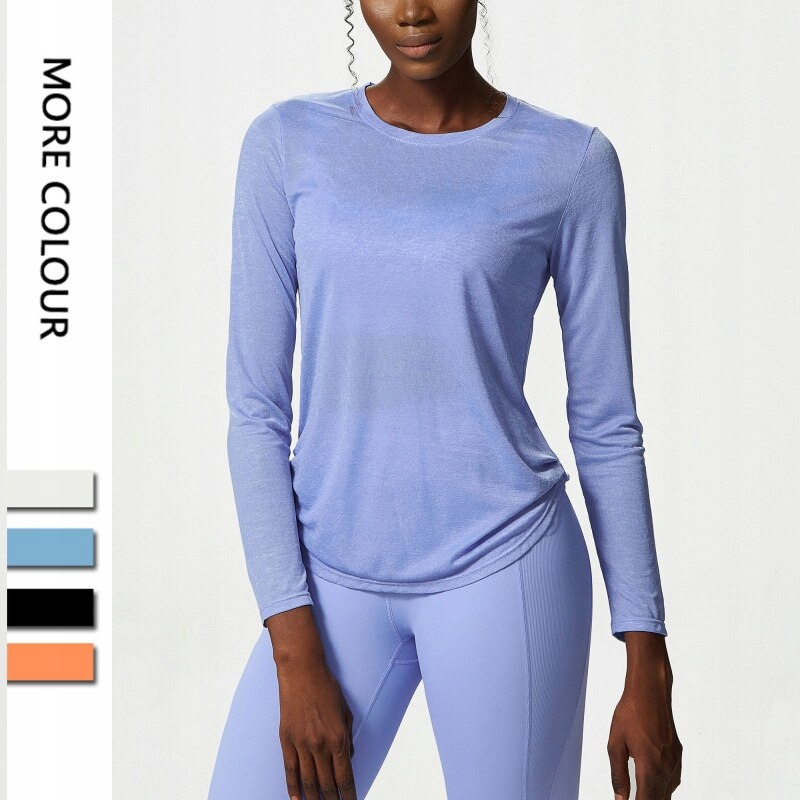 Koszulka do jogi z długim rękawem, kobiety, boczne, plisowane, luźne, treningowe, siłownia, Top, oddychająca, szybkoschnąca bluza, kobieca odzież sportowa
