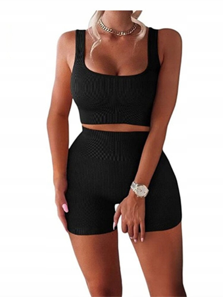 Dwuczęściowy zestaw dla kobiet kamizelka z dzianiny sport pępek biustonosz wysokiej talii Butt Lift szorty Fitness joga odzież garnitur kobiet legginsy gimnastyczne