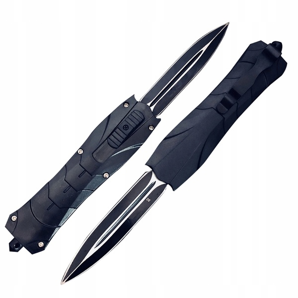 Nóż sprężynowy typu OTF (z ostrzem wysuwanym od frontu), które automatycznie wysuwa się i chowa w rękojeści.