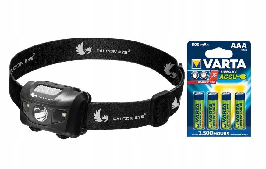 Latarka czołowa Falcon Eye Orion FHL0012 + 4x akumulatorki Varta Ready2use R03 AAA Ni-MH 800 mAh