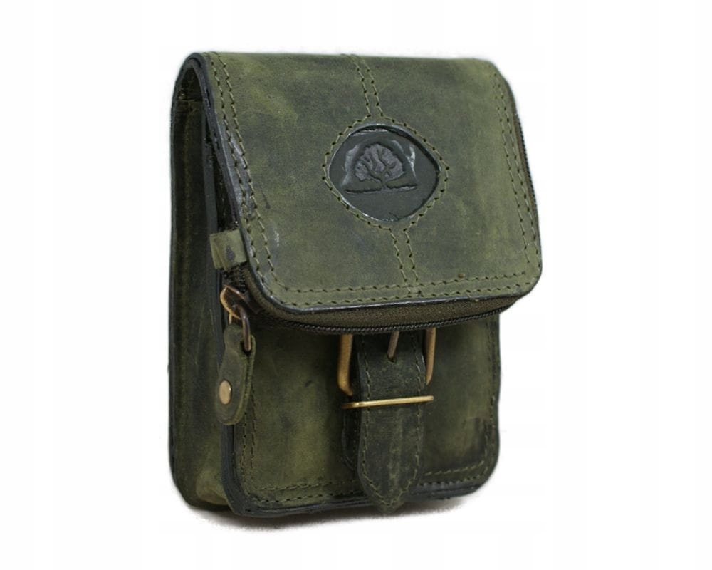 Saszetka skórzana Greenburry do noszenia na pasku. Zapinana metalowym zatrzaskiem (2 stopnie regulacji). Saszetka ma dużą komorę na banknoty, zamykaną na suwak. W komorze głównej znajduje się otwarta kieszeń na dokumenty. Na froncie znajduje się kieszeń zapinana klapą z metalowym zatrzaskiem, a pod nią wąska kieszeń na dokumenty. Z tyłu znajdują się dwie szlufki do założenia saszetki na pasek od spodni.