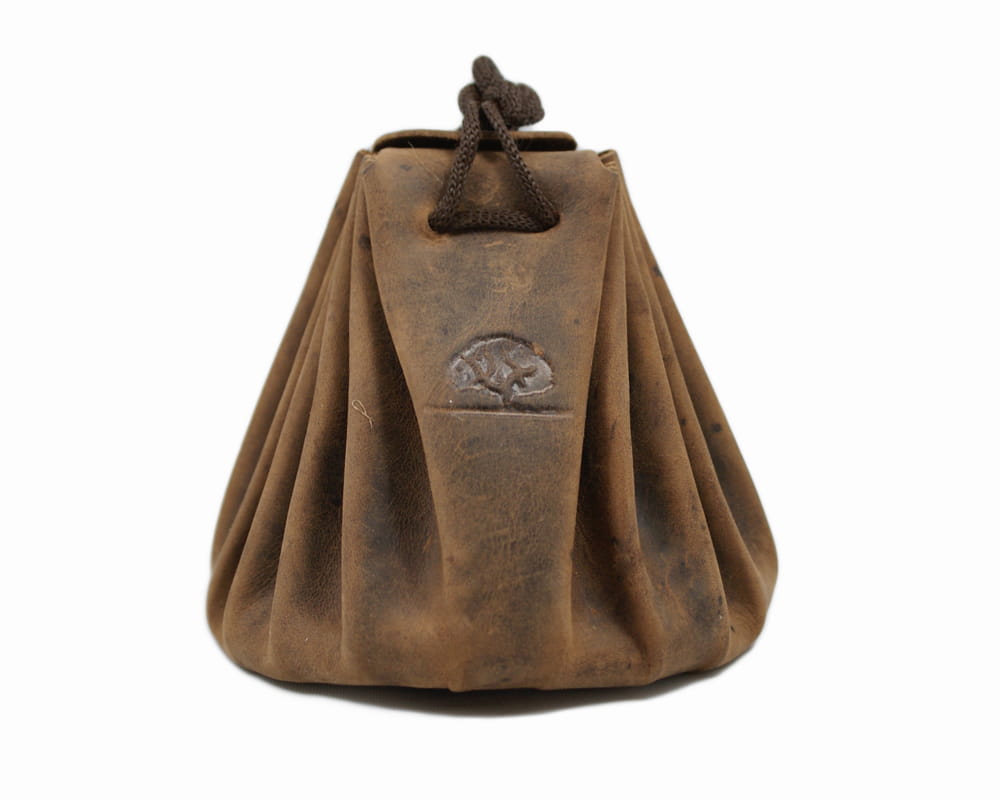Sakiewka zamykana trokiem na monety, drobiazgi; uszyta z wysokiej jakości skóry naturalnej, obrabianej ręcznie, naturalnymi garbnikami, co nadaje jej niepowtarzalny wygląd i fakturę w odcieniu klasycznego „postarzanego” brązu.