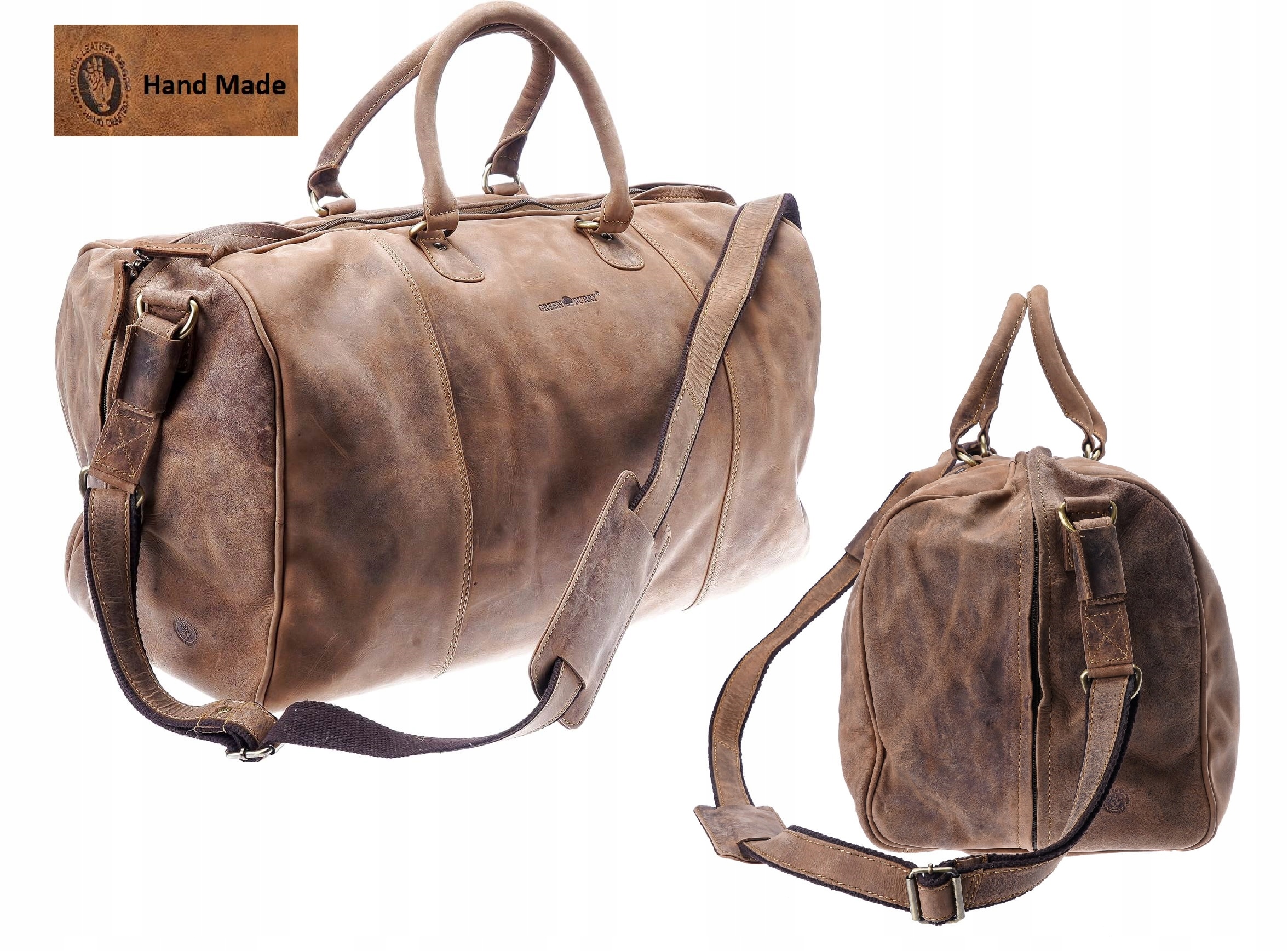 Torba duża, podróżna (weekendowa), zamykana na suwak, wykonana z wysokiej jakości skóry naturalnej, obrabianej ręcznie, naturalnymi garbnikami, co nadaje jej niepowtarzalny wygląd i fakturę w odcieniu klasycznego „postarzanego” brązu.