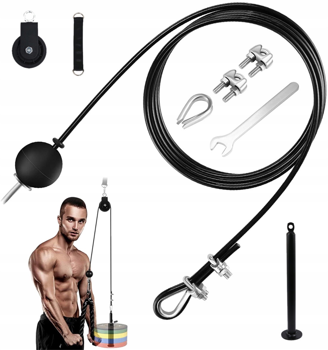 Zaprojektowany jako prosty w instalacji i zajmujący mało miejsca sprzęt treningowy, jest zdecydowanie idealny do domowych siłowni. W zestawie znajduje się stalowa lina w czarnej gumowej osłonie. Zestaw wyposażony jest w ciche, obrotowe koło pasowe, wykonane ze specjalnej ciężkiej stali, zapewniając stabilną i cichą pracę układu bloczków. Różnorodne czynności ćwiczeniowe można uzyskać zmieniając sposób łączenia klamry wciągnika. W tym zestawie znajduje się sam mechanizm wyciągu bez dodatkowych akcesoriów.
