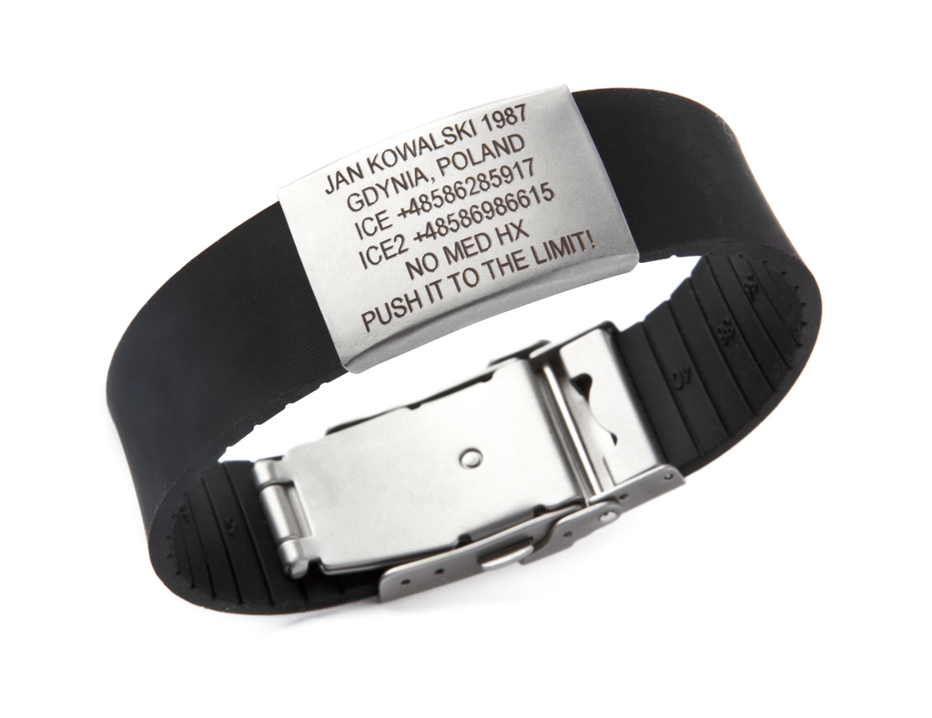 Na opasce Elite możesz umieścić wszystkie swoje najważniejsze dane, które mogą przydać się w krytycznej chwili. Zostaną one wygrawerowane laserowo na identyfikatorze ze stali nierdzewnej, dlatego są trwałe i nie zostaną nigdy zmyte ani starte. Dostępnych jest 15 kolorów opaski Elite.