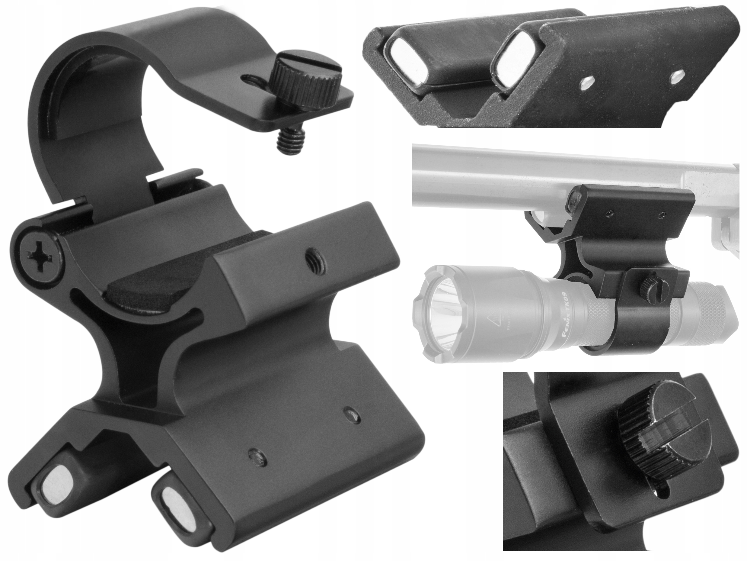 Montaż na magnes magCLIP do broni posiada dwa silne magnesy neodymowe wyłożone gumową warstwą ochronną zapobiegająca zarysowaniu jednostki. Jego montaż i demontaż trwa ułamki sekund. Montaż pewnie i solidnie osadza się na metalowym elemencie jednostki, a do jego zdjęcia trzeba użyć większej siły. Może znaleźć zastosowanie przy rowerze, do karoserii samochodu. Nie potrzeba żadnych narzędzi do demontażu.