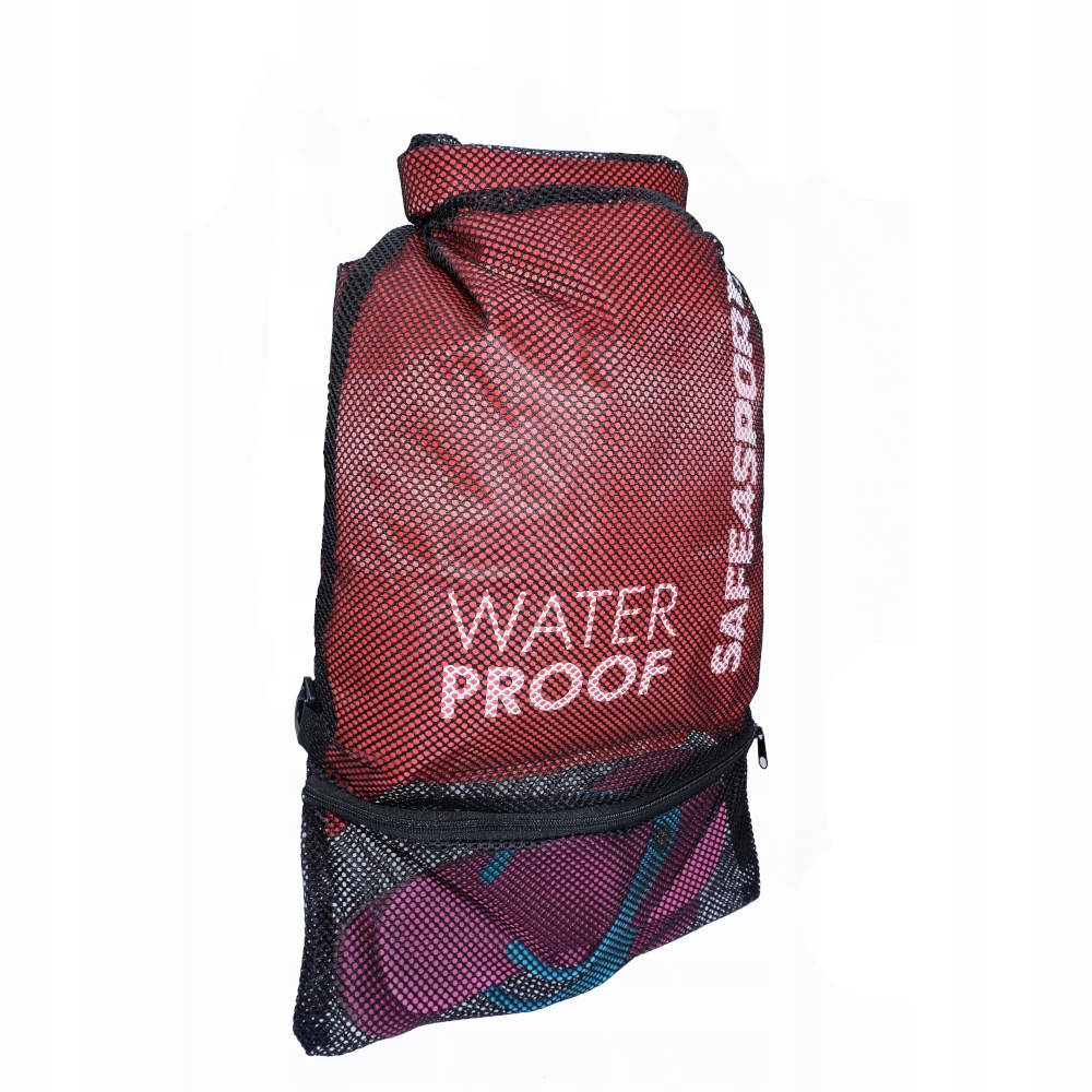 Plecak marki Safe4sport co coś więcej niż zwykły worek treningowy. Łączy on przewiewność tradycyjnej siatki na sprzęt treningowy z praktycznością wodoszczelnego plecaka. Wewnętrzna, w pełni wodoodporna komora wykonana jest z nowoczesnego, ultra lekkiego poliestru 210T. Umożliwia ona schowanie rzeczy wrażliwych na działanie wody. Daje ona gwarancję, że pozostawione w niej rzeczy pozostaną suche i czyste bez względu na panujące warunki atmosferyczne. Zewnętrzna, szybkoschnąca komora wykonana została z wytrzymałej siatki umożliwiającej prawidłowy transport mokrego sprzętu pływackiego takiego jak strój, klapki, okulary pływackie, bojka. Materiał z siatki pozwala na szybkie wysychanie sprzętu przez co zapobiega powstawaniu pleśni, bakterii i przykrego zapachu.