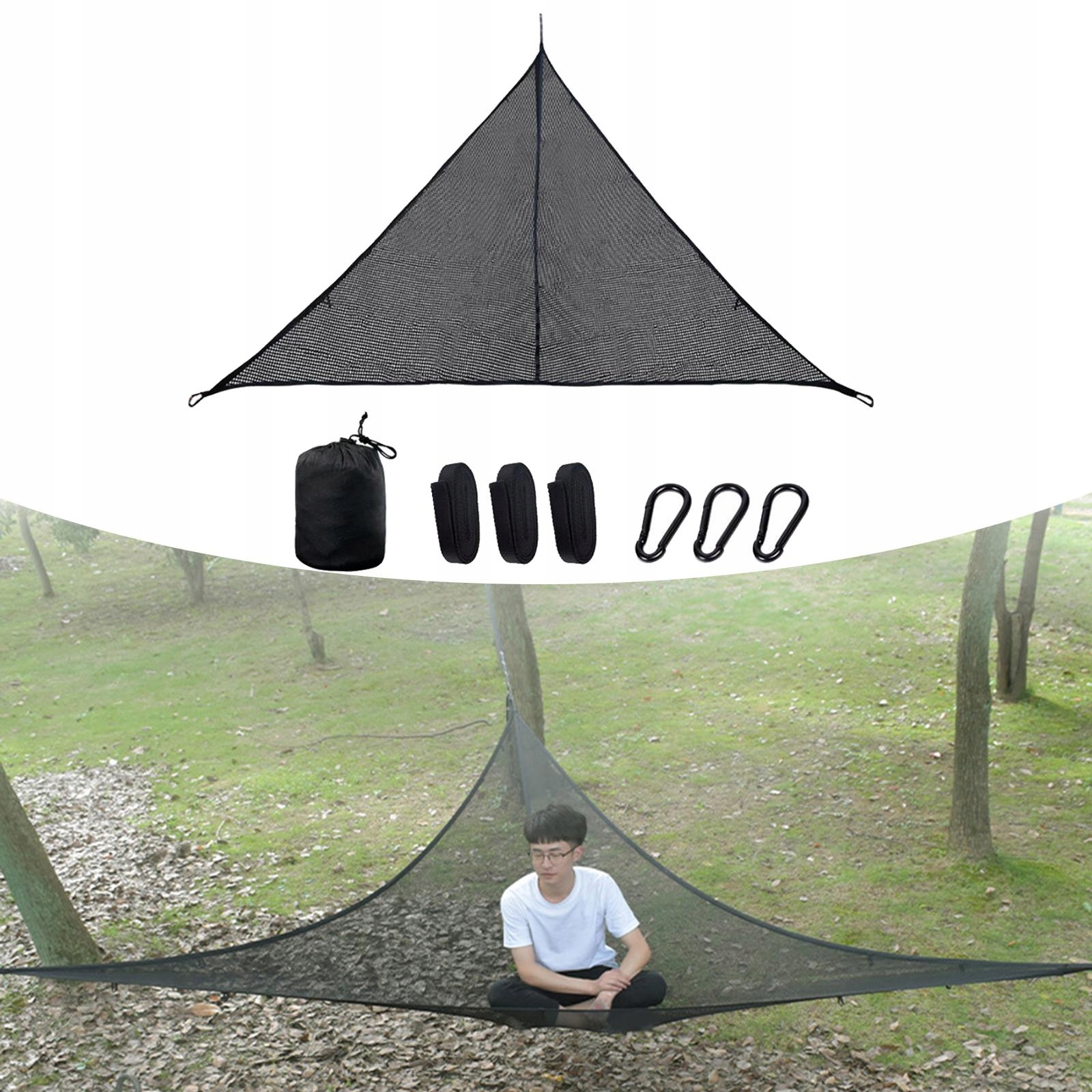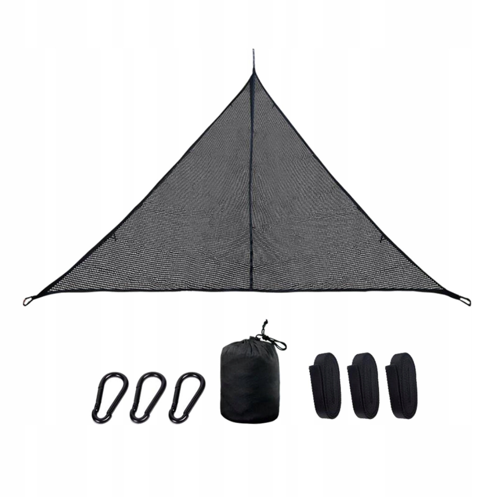 Zestaw hamakowy zawiera 3 mocnych karabińczyków i 3 10 stopowych pasów do drzewa