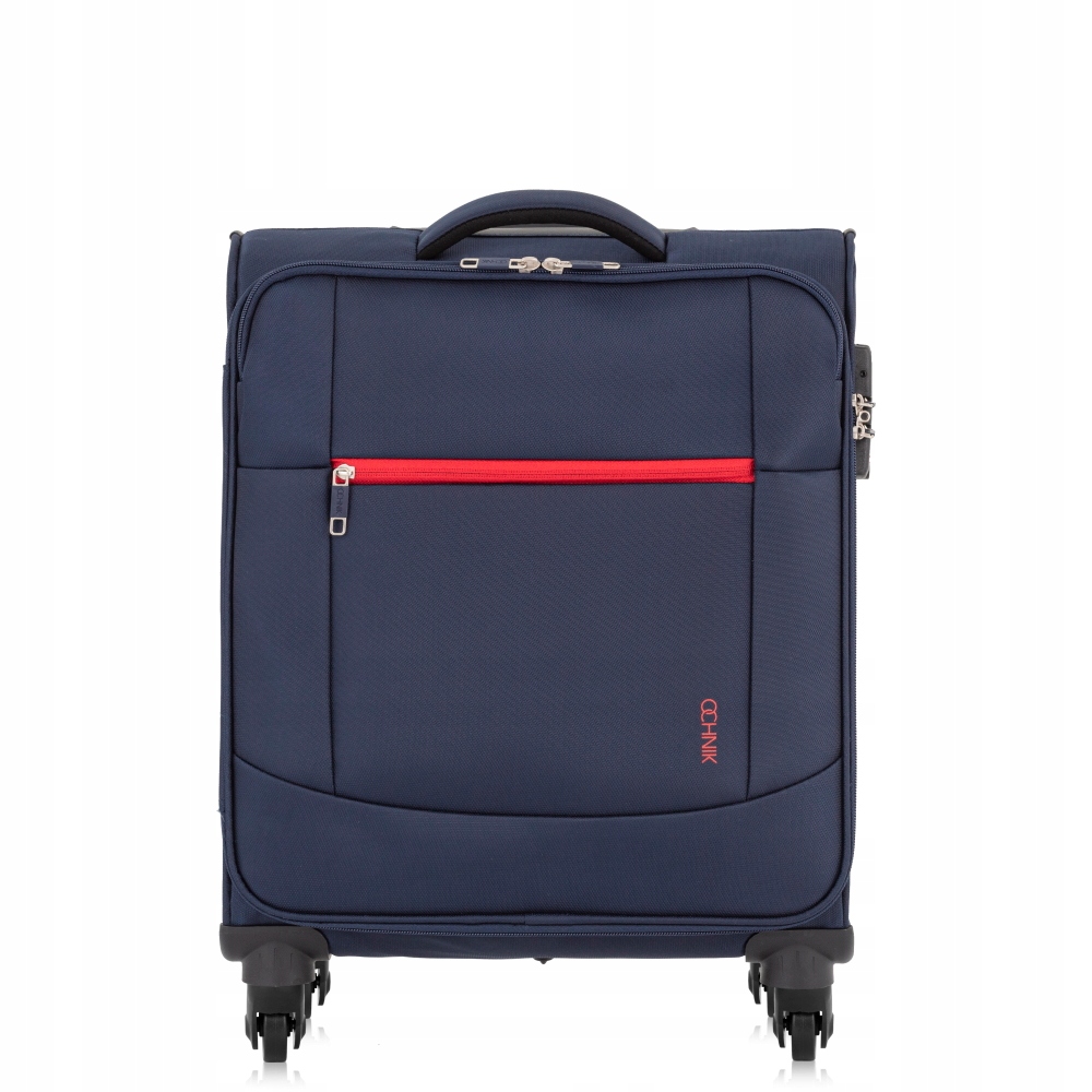 Mała walizka wykonana z odpornego na zarysowania nylonu.Kółka pojedyncze, wykonane z mieszanki kauczuk + guma. Model dwukomorowy. Wewnątrz większej komory znajduje się przestrzeń na odzież zamykana pasami zabezpieczającymi oraz kieszeń na suwak. Na zewnątrz z przodu kieszeń na suwak.