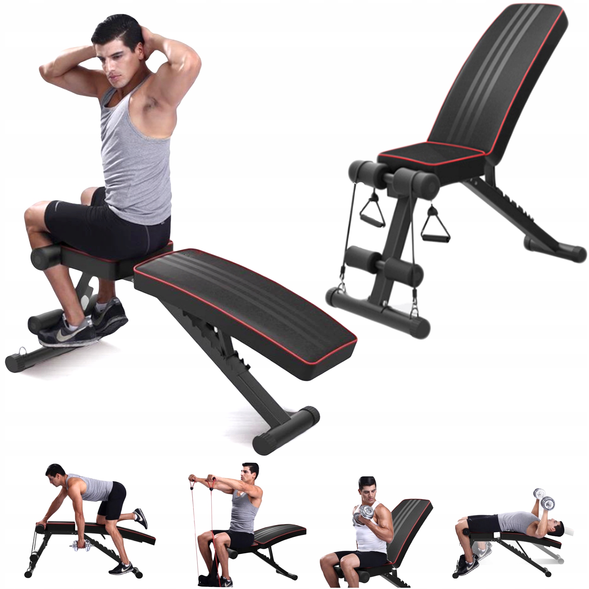 REGULOWANA ŁAWKA ŁAWECZKA DO ĆWICZEŃ Z EKSPANDERAMI
