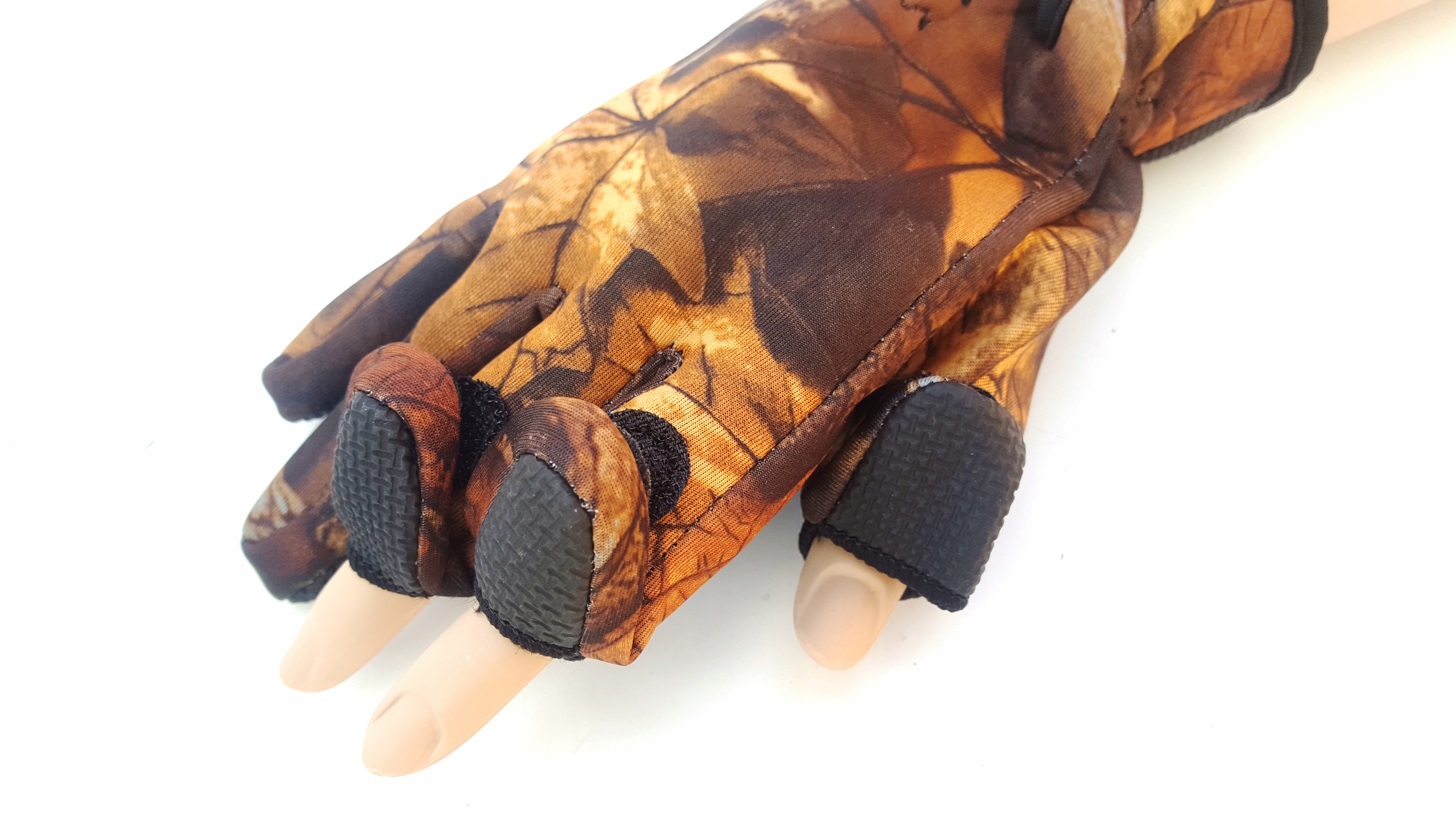 Kciuk i palec wskazujący są odsuwane, dzięki temu nie trzeba ich ściągać np. oddając strzał. Rzepy utrzymują odsunięte części na miejscu.