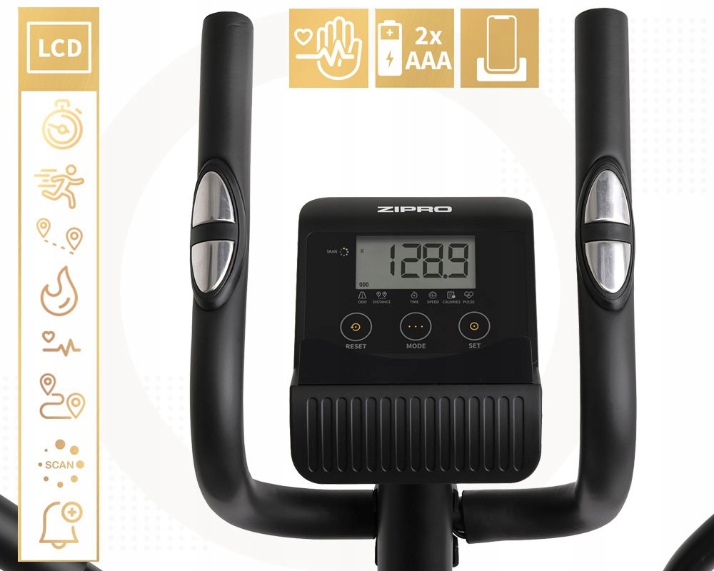 Zipro Burn Gold korzysta z magnetycznego systemu oporu. Osiem poziomów jego regulacji pozwala dopasować ćwiczenia do indywidualnych potrzeb i poziomu wytrenowania. Mocna konstrukcja zachowuje się stabilnie podczas ćwiczeń i sprawia, że swobodnie z urządzenia mogą korzystać osoby o wadze do 120 kilogramów. Uchwyt na bidon pozwala mieć w czasie treningu pod ręką wodę lub izotonik.