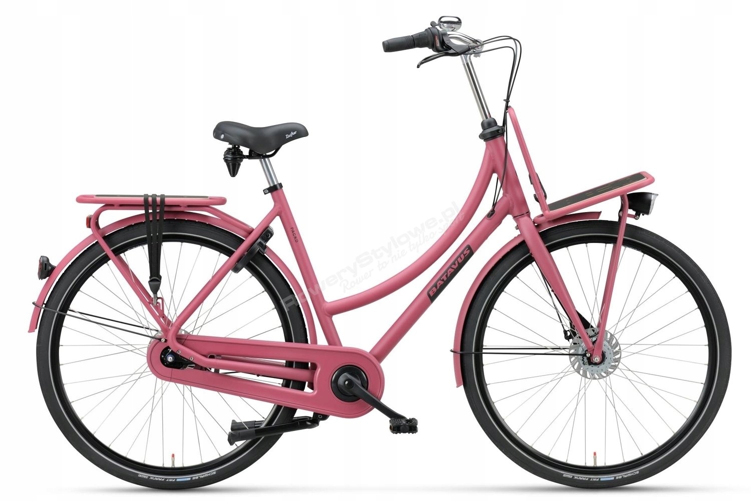 Batavus PACKD 3 został wyposażony w dwa mocne bagażniki, dzięki którym możemy przewieść znacznie więcej bagaży. Klasyczny dla roweru użytkowego bagażnik przedni idealnie nadaje się do montażu skrzynki lub prostokątnego kosza wiklinowego. 3 biegi w tylnej piaście planetarnej Shimano Nexus 7 w zupełności wystarczają do sprawnego poruszania się w mieście oraz na pozamiejskich wycieczkach utwardzonymi drogami leśnymi.