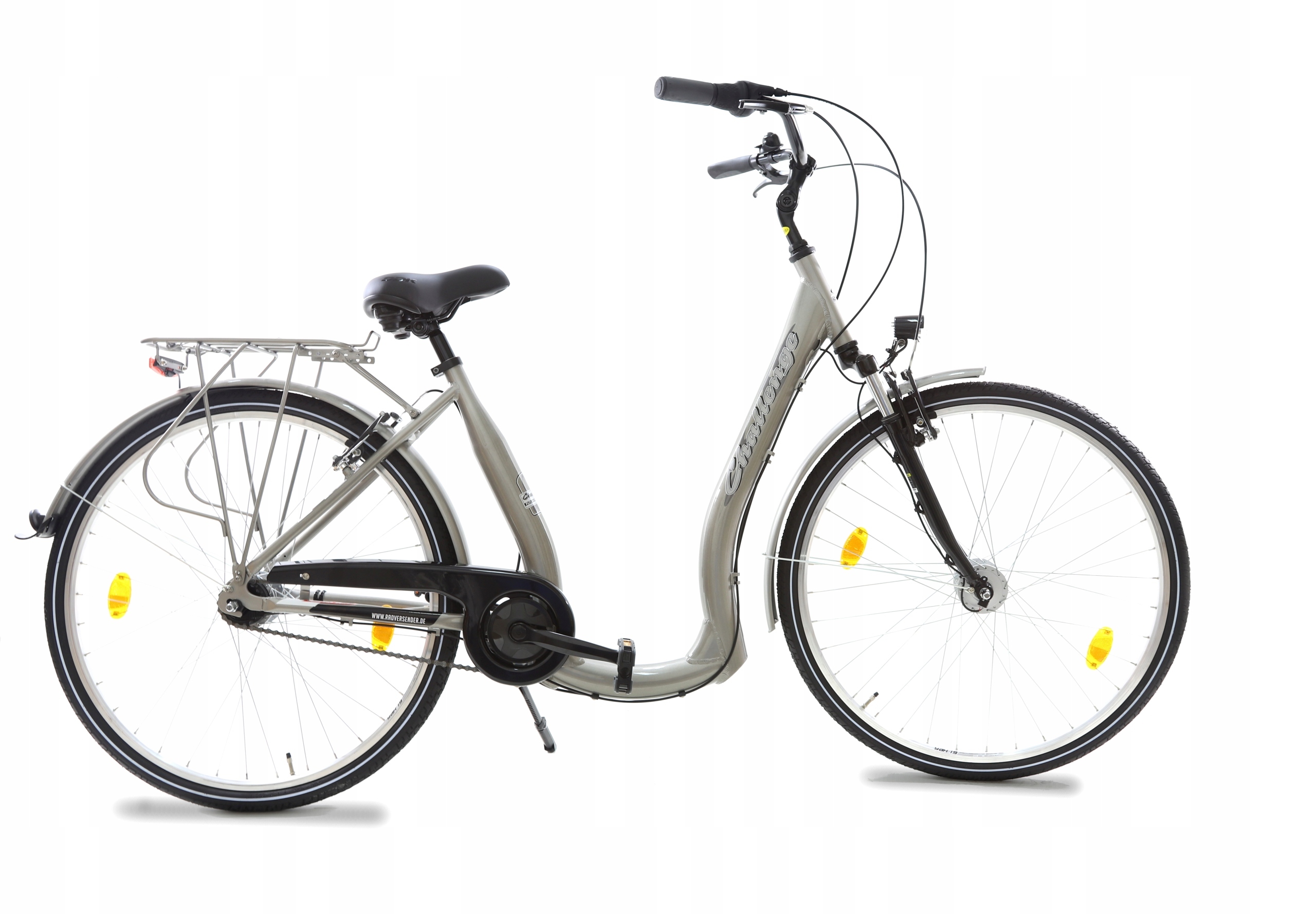 Klasyczny rower miejski z ramą z niskim wsiadem dla osób które mają problemy z kręgosłupem i nie tylko. Rama jest specjalnie wyprofilowana żeby ułatwić wsiadanie oraz zsiadanie z roweru. Komfortowy rower do jazdy miejskiej w uniwersalnym kolorze .
