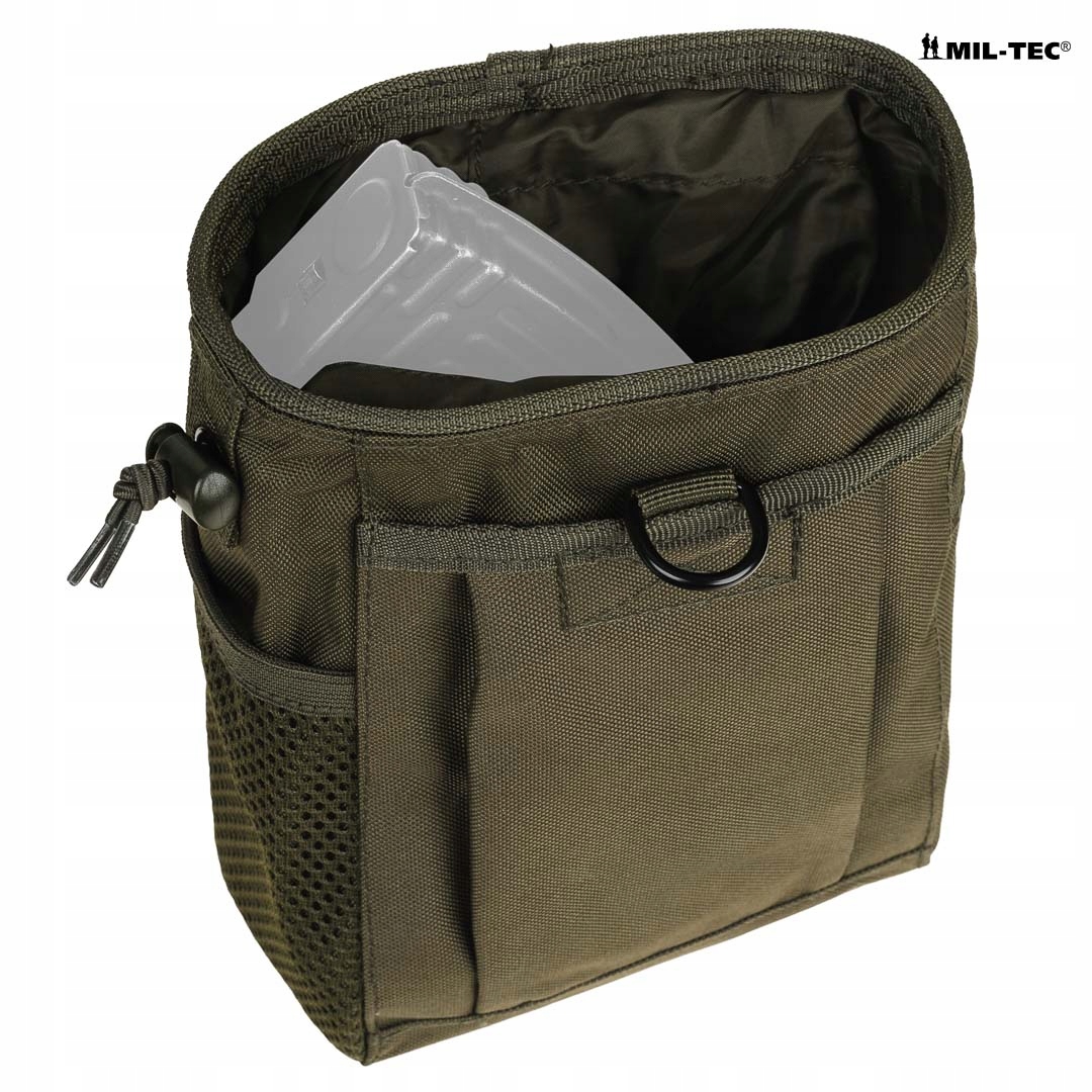 Kieszeń zrzutowa / specjalna w systemie montażowym MOLLE 25mm. Produkt niemieckiej marki MIl-Tec®. Pełna specyfikacja militarna, solidna i praktyczna. Integralna część oporządzenia taktycznego montowana zazwyczaj do pasa, kamizelki lub panelu udowego. Przeznaczona na "zrzut" - odzyskiwane magazynki. Wykorzystywany również jako tzw. Grab and Save (przechwyć i schowaj). Uniwersalny model, który daje możliwość dowolnego wykorzystania, np. na manierkę, rację żywnościową, drobne wyposażenie oraz elektronikę.