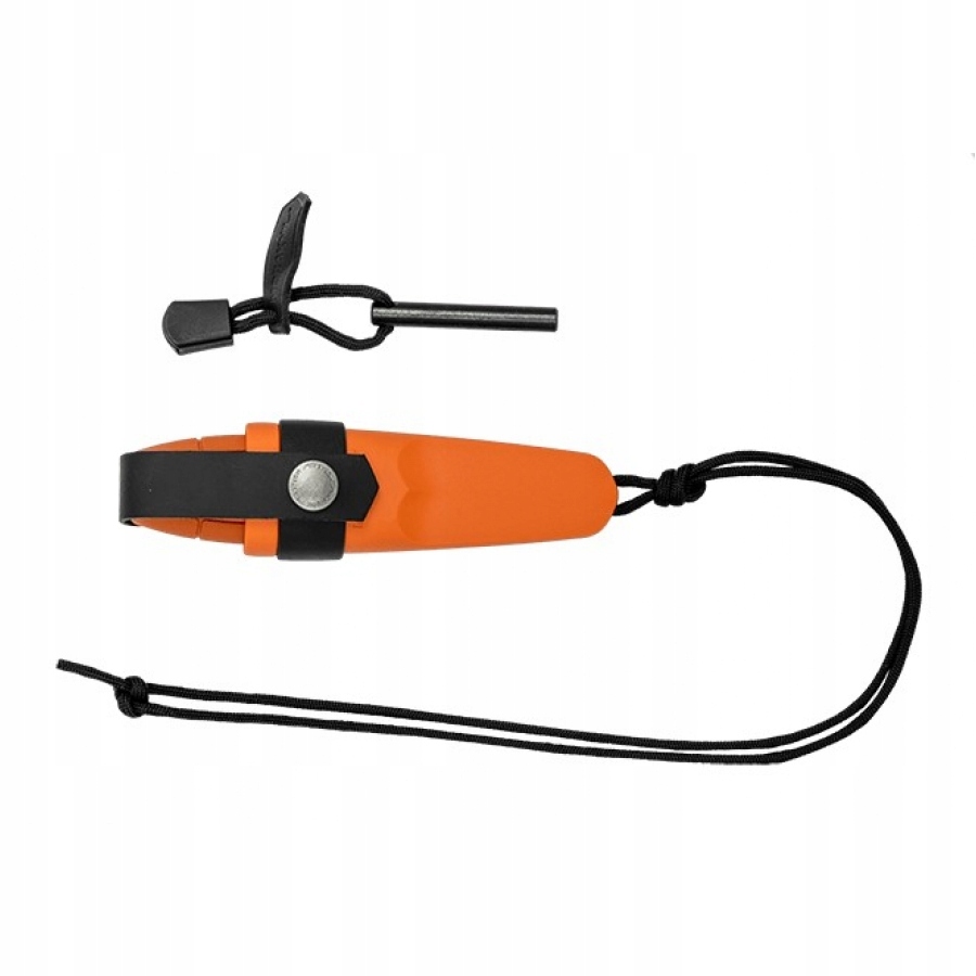 Wersja Neck Knife Kit posiada w zestawie linkę z paracordu (100cm), dodatkową blokadę zabezpieczającą nóż oraz krzesiwo Morakniv.