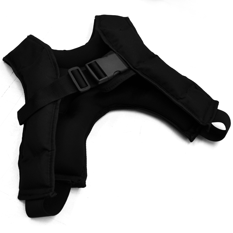 Konstrukcja kamizelki jest odpowiednio sztywna i dopasowana do ciała osoby trenującej.
