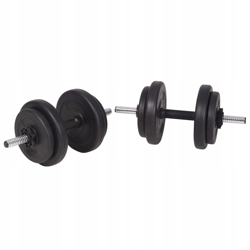 Wszechstronny zestaw ze sztangami i hantlami jest idealny do ćwiczeń klatki piersiowej, bicepsów, ramion, tricepsów i mięśni pleców. Zawiera dwa talerze obciążeniowe o wadze 15 kg, dwa o wadze 10 kg, dwa o wadze 5 kg, cztery o wadze 2,5 kg, sześć o wadze 1,25 kg, dwa gryfy sztang i dwa gryfy hantli o łącznej wadze około 90 kg.