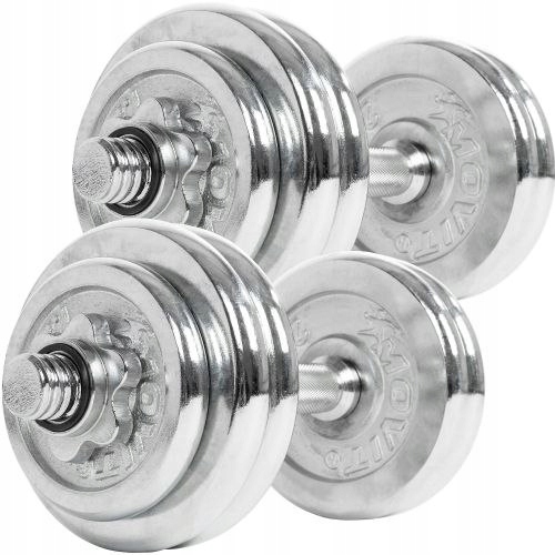 Zestaw hantli MOVIT profesjonalna chromowana talerze z gryfami, 2 x 15 kg