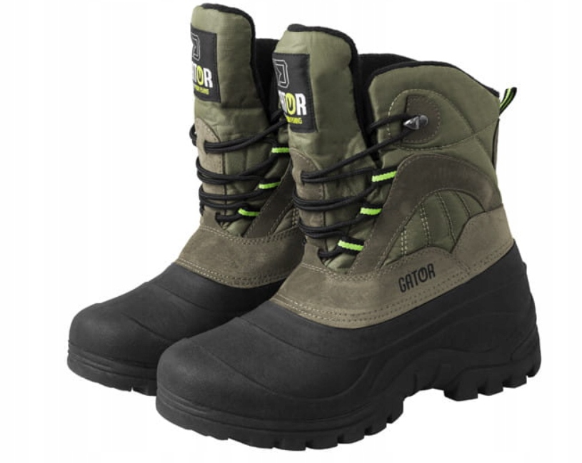 Buty Delphin GATOR są przeznaczone do ekstremalnych wypraw, szczególnie w chłodniejszych porach roku. Podniesiona gumowa krawędź podeszwy rozciąga się do wysokości kostek, co oznacza, że chodzenie w moczarach, stopionym śniegu i błocie nie stanowi problemu dla GATOR. Ta gumowa część jest również bardzo łatwa do czyszczenia. Cholewka w tym fasonie to połączenie wytrzymałej tkaniny nylonowej i sztucznej skóry. Materiały te są odporne na złą pogodę i w razie potrzeby można je łatwo impregnować. Język buta jest przyszyty do wysokości 17 cm, co oznacza, że możesz poruszać się przez krótki czas w tak głębokich, wilgotnych miejscach. Sznurowanie jest rozwiązaniem przez oczka tekstylne, u góry sznurowania znajduje się jedno metalowe oko. Wnętrze buta wykonane jest z wygodnego mikropolaru. Komfort termiczny zapewnia warstwa sztucznej mikrofibry między warstwami zewnętrzną i wewnętrzną. Czarno-zielona kombinacja materiałów docenią nie tylko wędkarze, ale także myśliwi, wędrowcy i wszyscy inni miłośnicy przyrody. Mimo solidności buty są bardzo lekkie, co z pewnością przyda się na dłuższy spacer. Na przykład oba buty w rozmiarze 43 ważą tylko 1200 g.