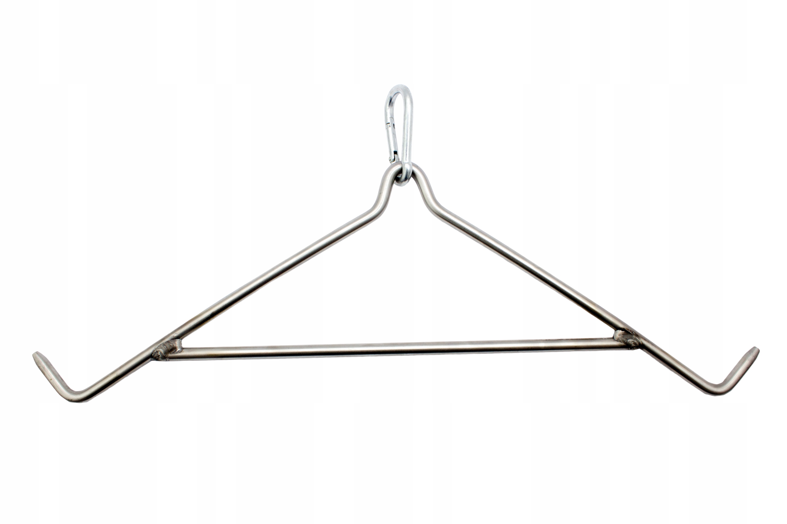 Wieszak ze stali nierdzewnej dający możliwość wygodnego obierania tuszy strzelonej zwierzyny. Wykonany jest z pręta o przekroju 10 mm. Testowany do wagi 240 kg. Zapewnia pewny chwyt i układ zwierzyny.