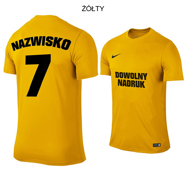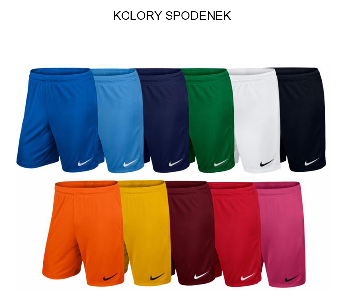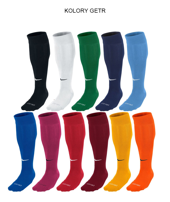 Strój składa się z koszulki, spodenek oraz pary getr marki Nike w wybranych kolorach. Kolory można łączyć dowolnie. W cenę wliczony jest dowolny nadruk z przodu a także z tyłu koszulki. Nadruk na plecach może składać się z maksymalnie 14 liter i dwóch cyfr (nazwisko+numer). Z przodu może znajdować się dowolny napis lub logo. Przy większych zamówieniach (od 10 szt.) możemy wykonać również nadruk dowolnego logotypu/herbu na piersi.