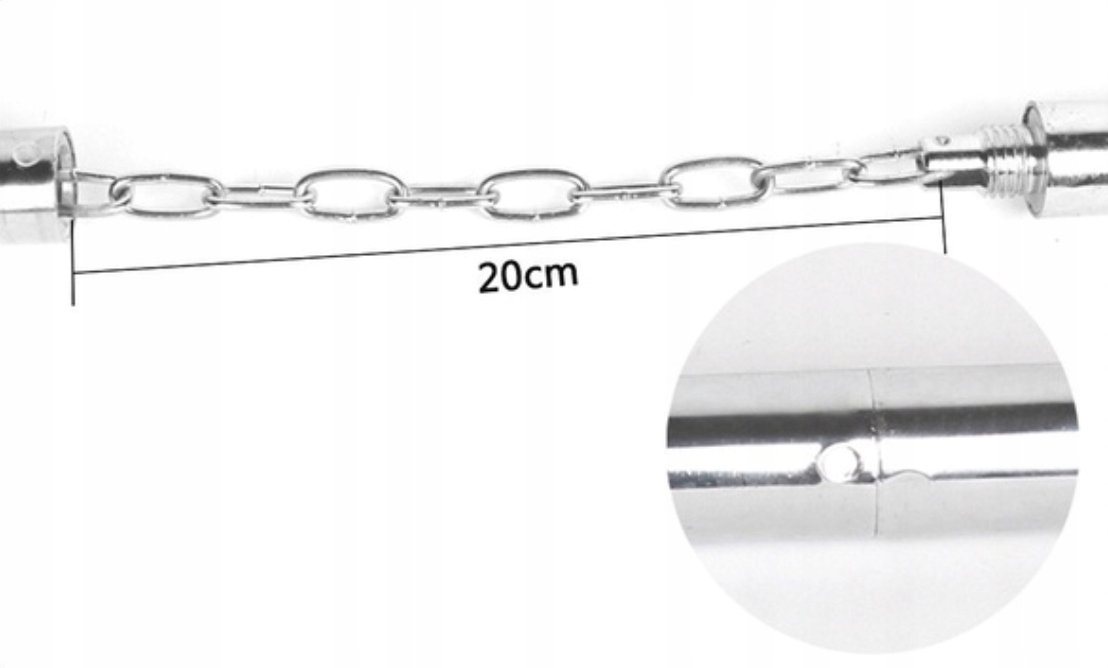 - Nunchaku ma pałki wykonane z ze stali nierdzewnej która skręcana jest w pałkę, łańcuch chowa się w jednej z pałek i po skręceniu powstaje duża jedna solidna pałka.