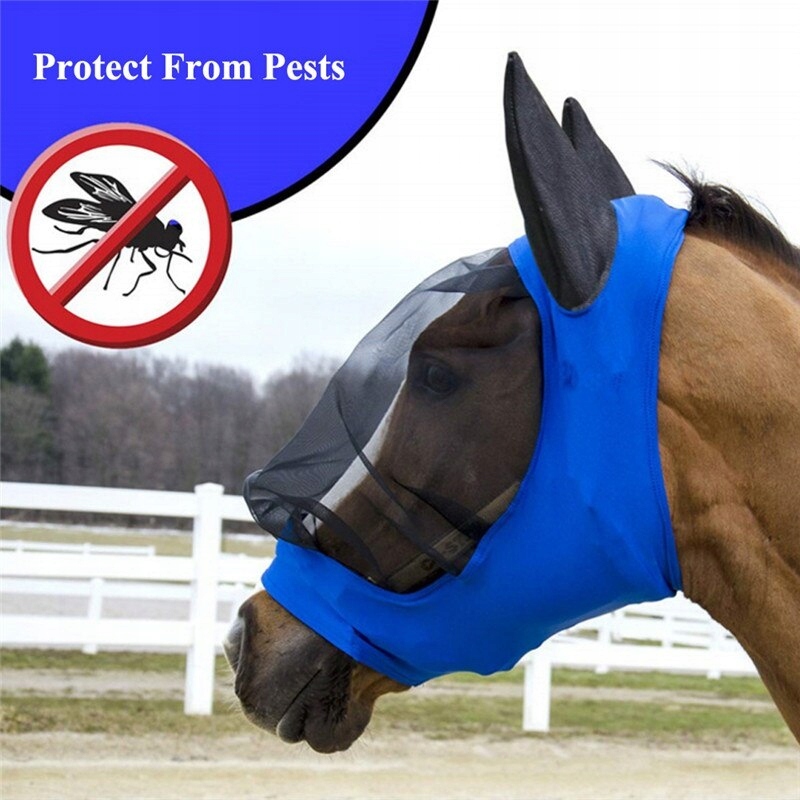 Odpinana maska siatki końskiej z nosem nosowym maska końska maska pełna twarz przeciw komarom z zamkiem błyskawicznym akcesoria jeździeckie
