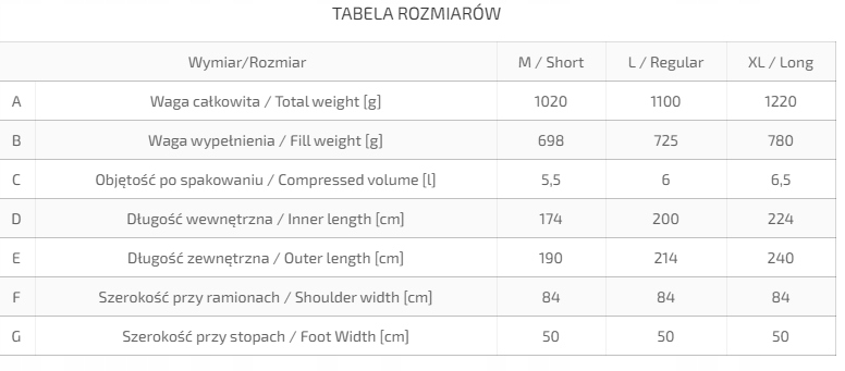 - Zastosowanie nowatorskiej powłoki IRL wewnątrz śpiwora znacząco podnosi komfort termiczny użytkownika.