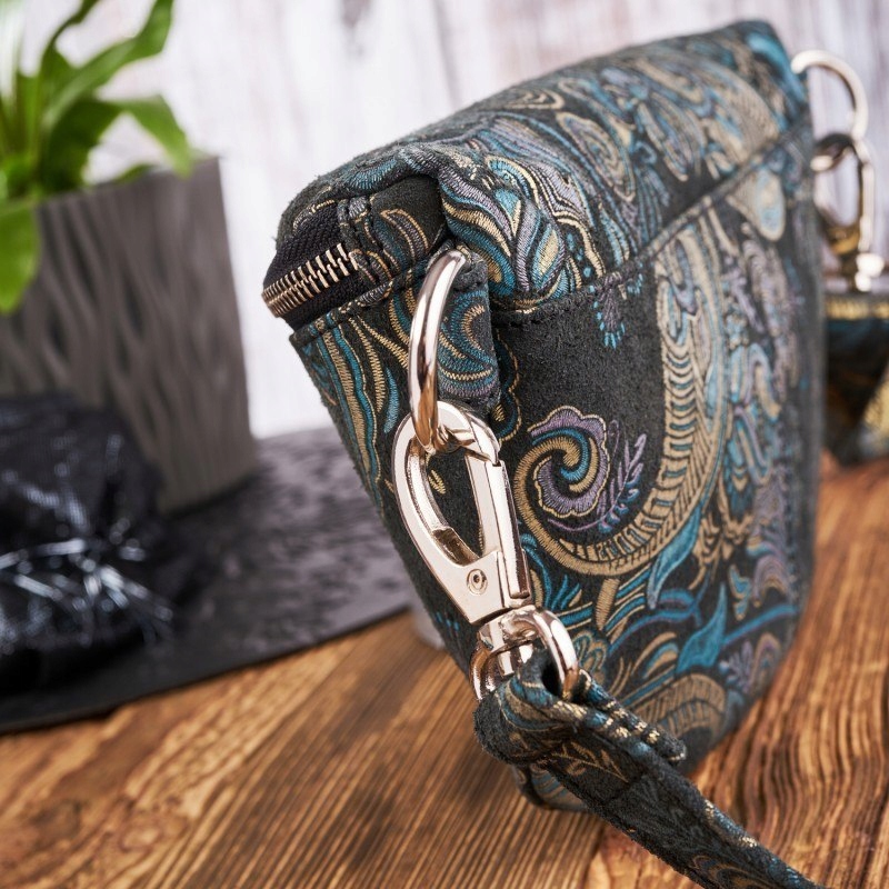 Świąteczny zestaw dla modnej kobiety w promocyjnej cenie Pojemny portfel damski Paolo Peruzzi zapinany na metalowy suwak. Portfel wykonany z naturalnej skóry tłoczonej w modny wzór roślinny. W środku 8 miejsc na karty kredytowe, dwa schowki na paragony za miejscem na karty oraz pojemna przegroda na suwak w której zmieścisz bilon. Dodatkowe dwie kieszenie na banknoty. Całość pakowana w ozdobne pudełko na prezent wykonane z recyclingowanej tektury. Ochrona RFID przez kradzieżą danych z kart zbliżeniowych. Charakterystyka portfela T-08-BL Model: T-08-BLKolor: czarny Materiał: skóra naturalna z efektem postarzeniaTłoczenie: motyw kwiatowo-roślinnyProducent: Paolo PeruzziIlość przegród na karty: 8Przegroda na banknoty: 2Kieszeń na bilon: takIlość schowków: 2Orientacja: poziomaOchrona RFID: tak Wymiary:Wysokość: 10 cmSzerokość: 19 cmGrubość ok.: 2 cm Klasyczny model saszetki damskiej T-36 w kolorze czarnym z orientalnym motywem na froncie. Pakowna komora główna pomieści najważniejsze przedmioty, które powinnaś mieć zawsze pod ręką - portfel, smartphone czy dokumenty. Dzięki regulowanemu paskowi możesz dopasować nerkę do swoich preferencji i nosić ją tak, jak lubisz - na ramię, na skos i na pas. Charakterystyka saszetki T-36-G Model: T-36-GProducent: Paolo PeruzziMateriał: skóra naturalnaKolor: czarny Zapięcie: metalowy suwakUchwyt: regulowany pasekIlość komór: 1Ilość kieszeni: 2Miejsce na telefon: takMieści A4: nie Wymiary: Wysokość: 17,5 cmSzerokość: 26,5 cm (mierzone u góry)Głębokość: ok. 7 cmDługość paska: max. 135 cm
